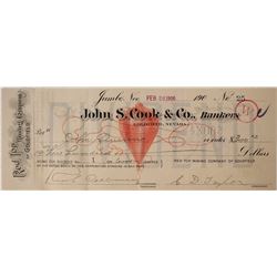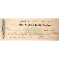 Check number 9 for payroll for JW Rutherford for the Jumbo Mining Company of Goldfield. This John S. Cook check has an elephant background vignette. A