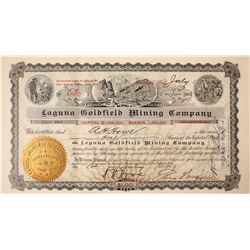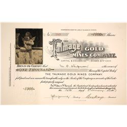 1) Goldfield Treasure. Number 203 for 1000 shares to Daniel Myers. Signed by George G Thomson and JS (?). Underground mining vignette with miners and