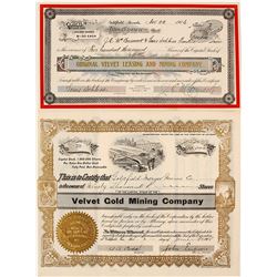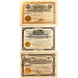 1) Palace Goldfield. Very Early Number 15. 5000 shares to WA Sherman. Signed by president Sherman and secretary Rowlands. Elk vignette. 2) St. Ives Go