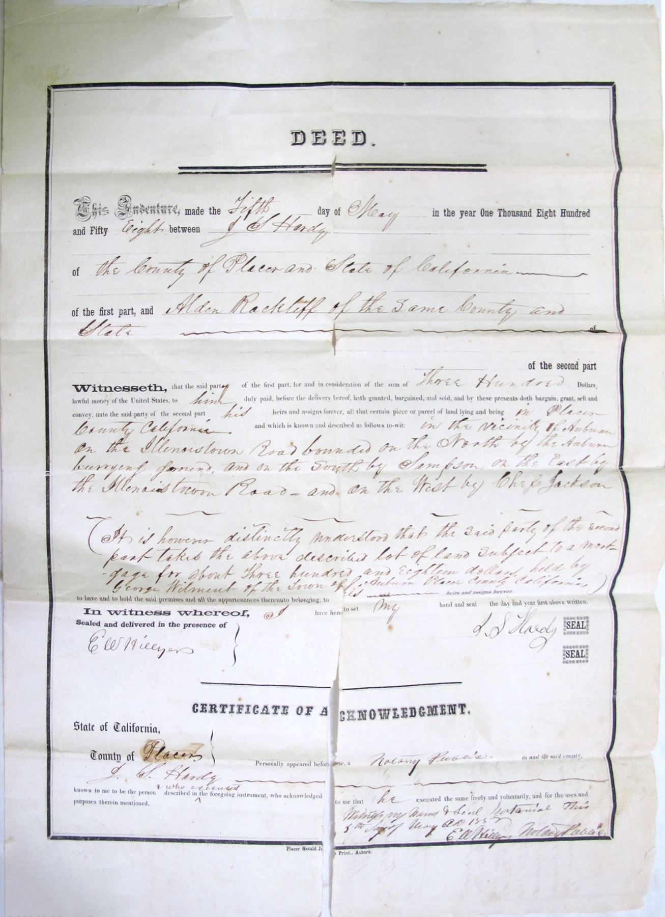 Printed by Placer Herald in Auburn, CA. J Hardy signatures. 21" x 17". Large tear on lower vertical crease and smaller crease tears. Sold as is.