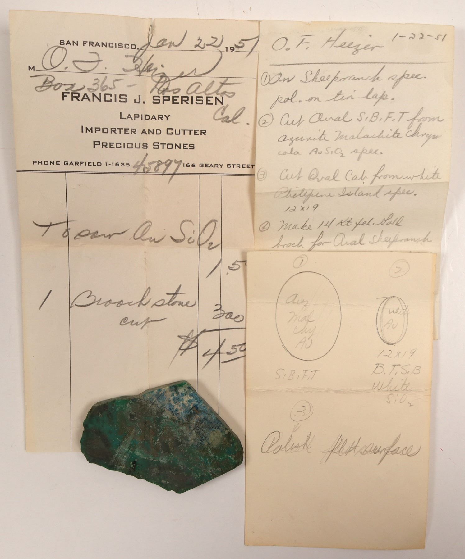 44.3 gram cut slab of high grade gold and copper ore from the John Heizer estate, Nevada Mining Engineer. This is a beauty.