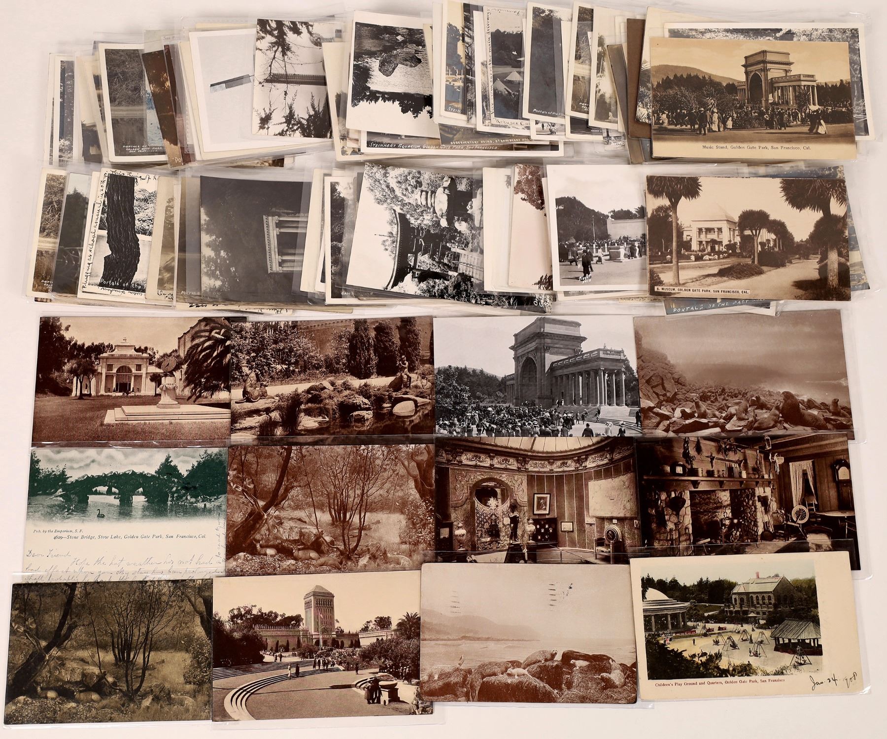 This large collection of about 100 real photo postcards + about 10 vintage and antique cards gives a tour of San Francisco's beautiful Golden Gate Park, it's monuments, art pieces, wildlife, and greenery. Date: Country (if not USA): State: California City: San Fancisco Provenance: