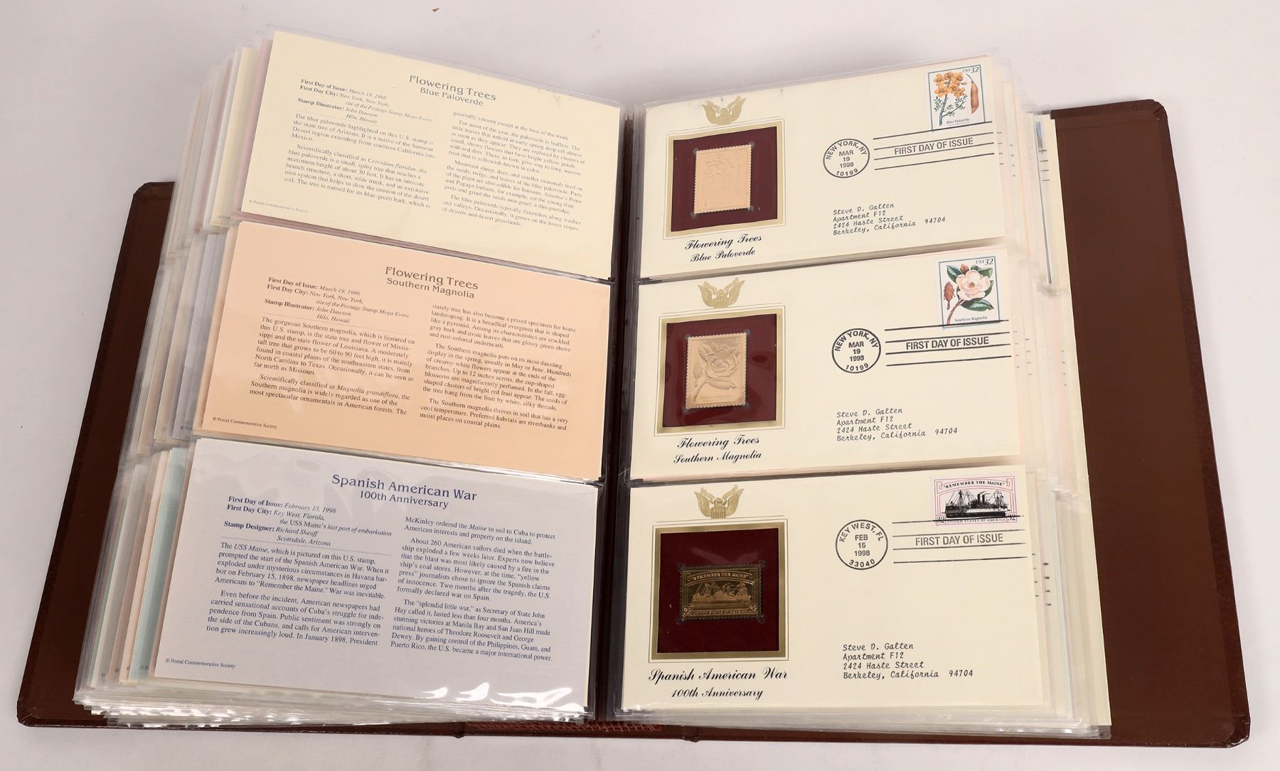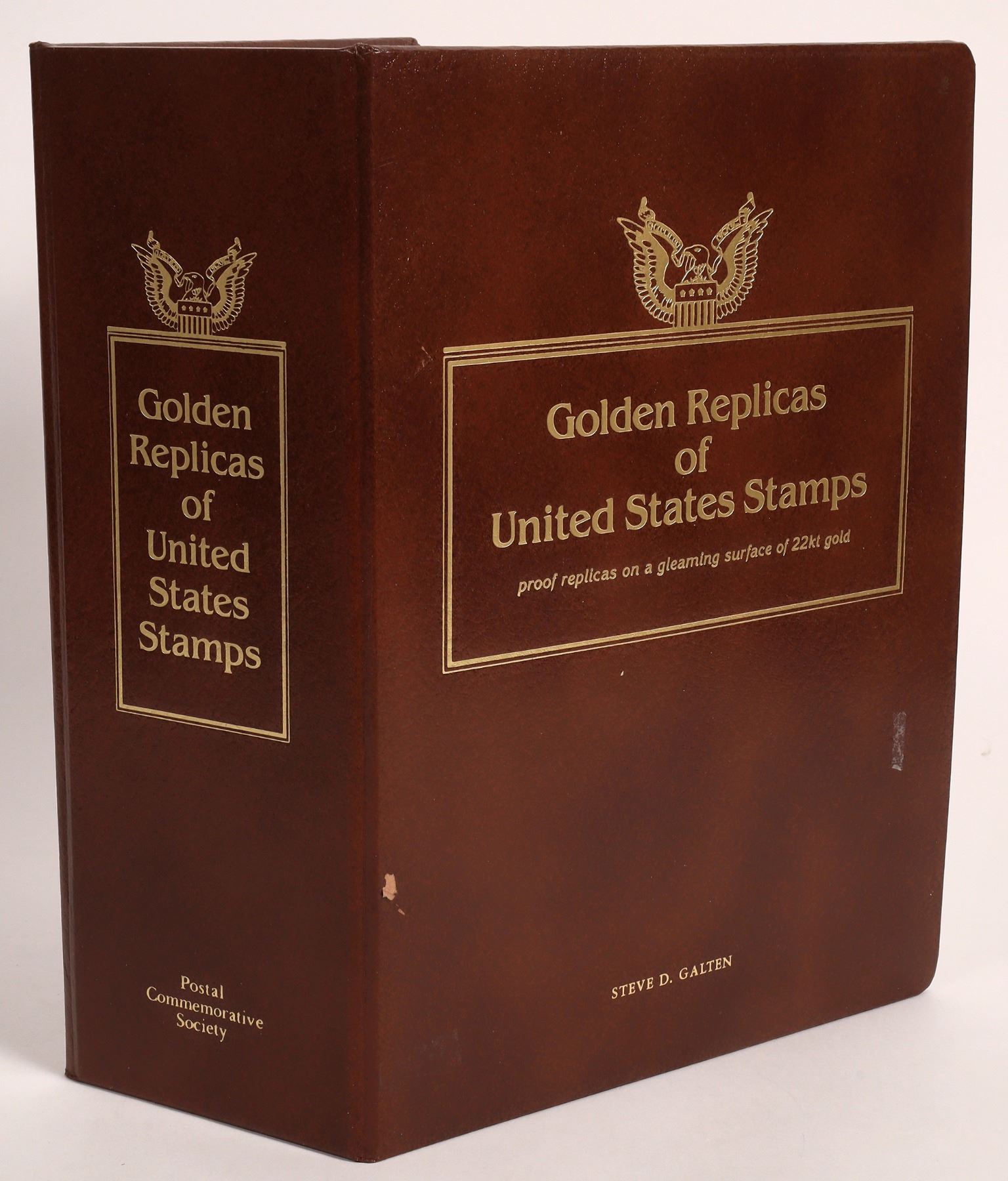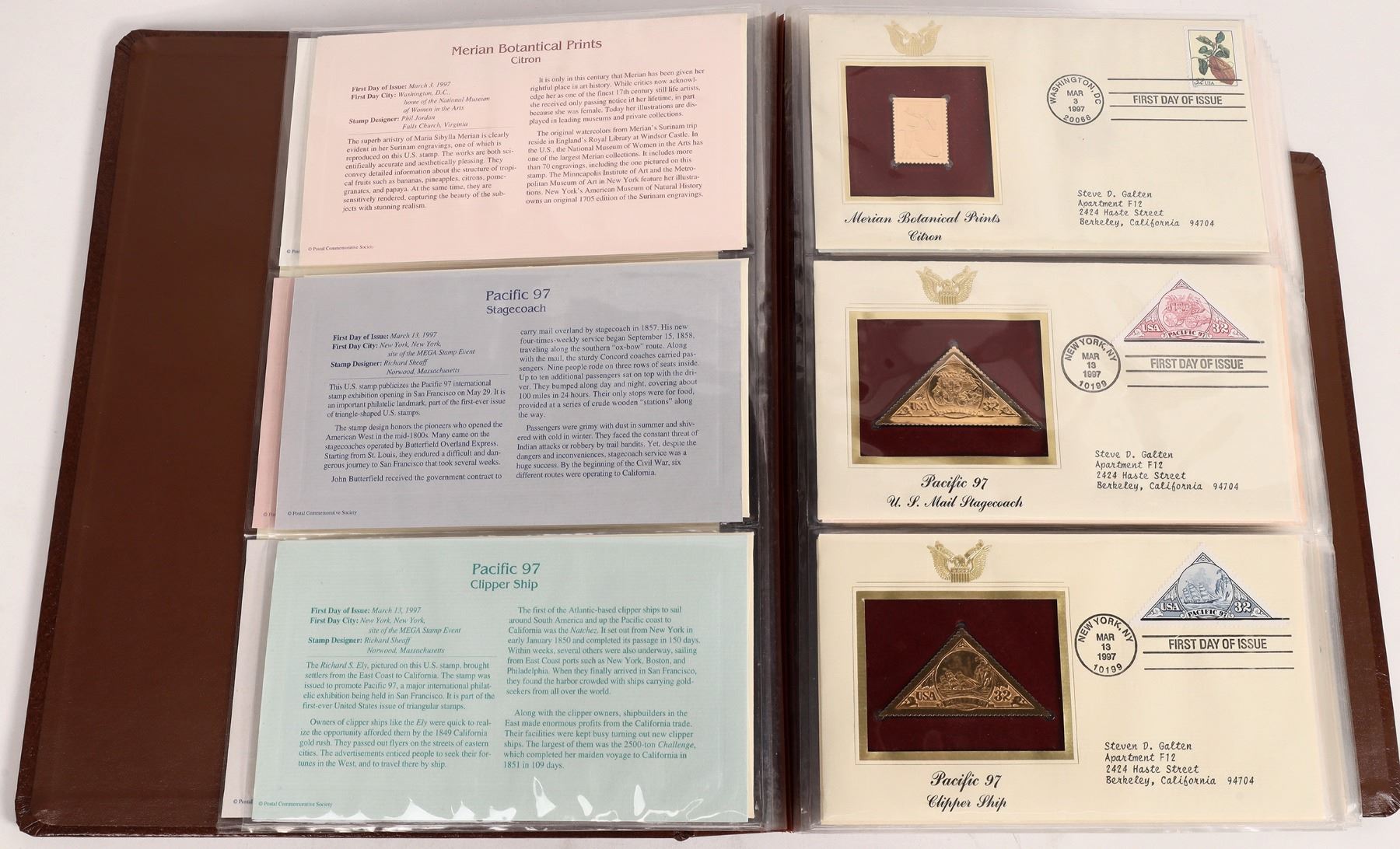 Postal Commemorative Society's Golden Replicas of the U.S. Stamp Program Collection. Each 22K Gold Replica Stamp is enclosed with an official First Day Cover bearing the First Day Issue Postmark of the First Day City designated by the U.S. Postal Service. This binder carries 74 Covers produced in 1997 and 1998.