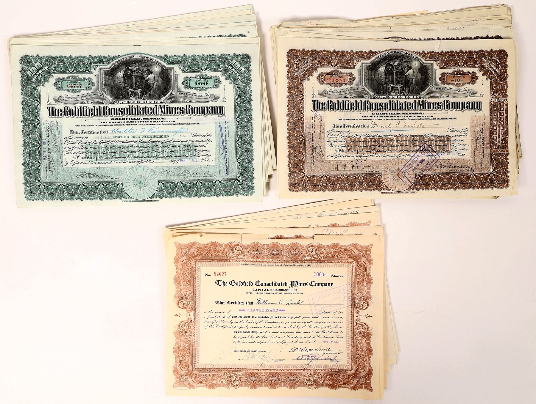 Goldfield Consolidated Mines Company Stock Group (100) [155657]