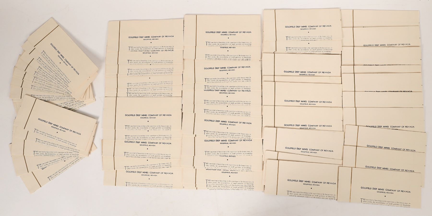 About 60 crisp Goldfield Deep Mines 6pp promo pieces with photos. Buy their stock for 20 cents per share. Seems like a good deal, what could go wrong? Nevada Goldfield