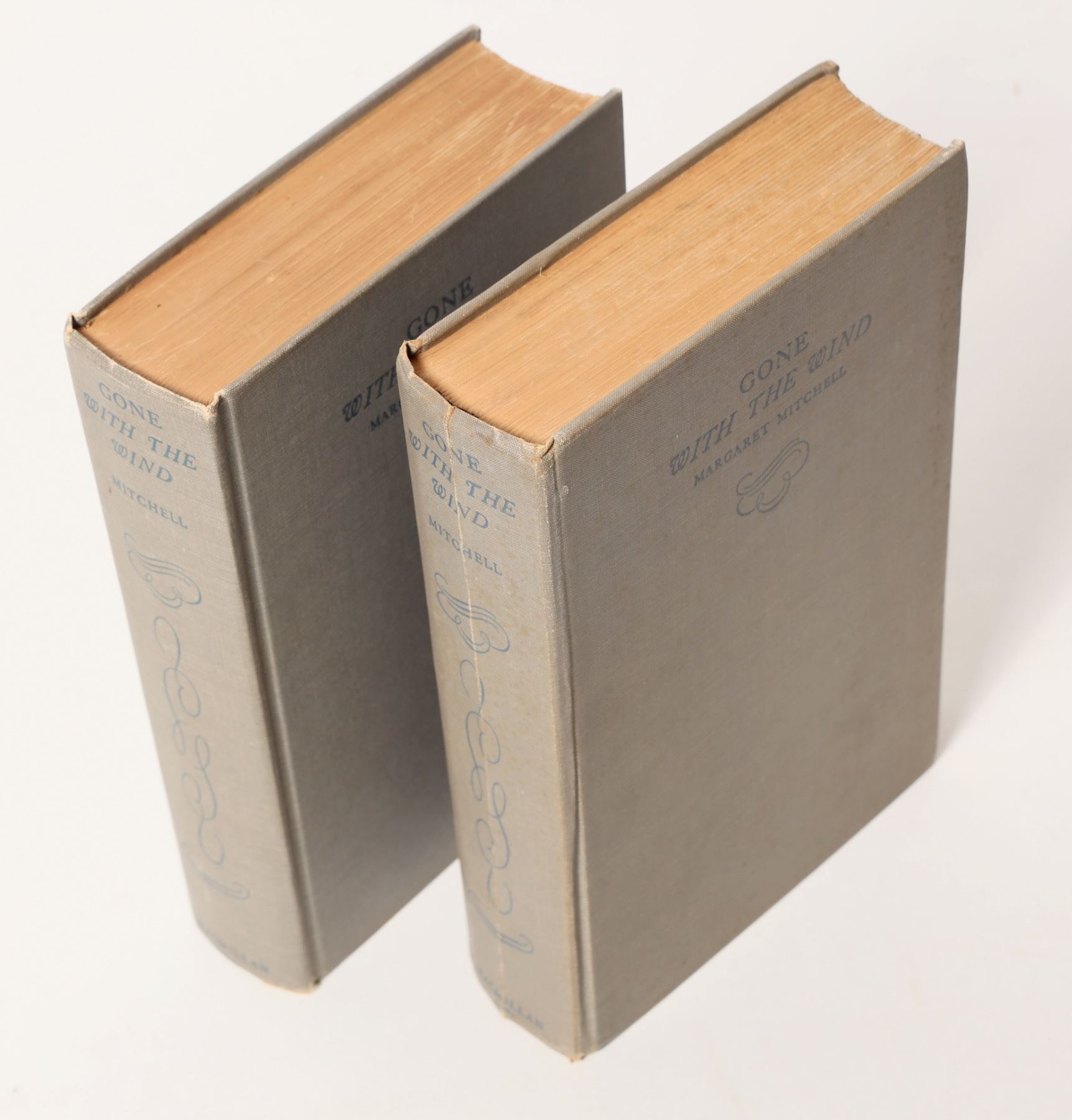 2 copies of 'Gone with the Wind' by Margaret Mitchell, both first edition. Published 1936. One is from the first ever printing of the book, the other is from the 5th printing. Very rare. Both copies are in good condition for their age; some toning/foxing of the page edges and minor spine wear/detachment, but generally stable. See photos. Each book 6"x8.75"x2". Don't miss these historic copies of a novel that has earned a defining place in the canon of American literature and film.