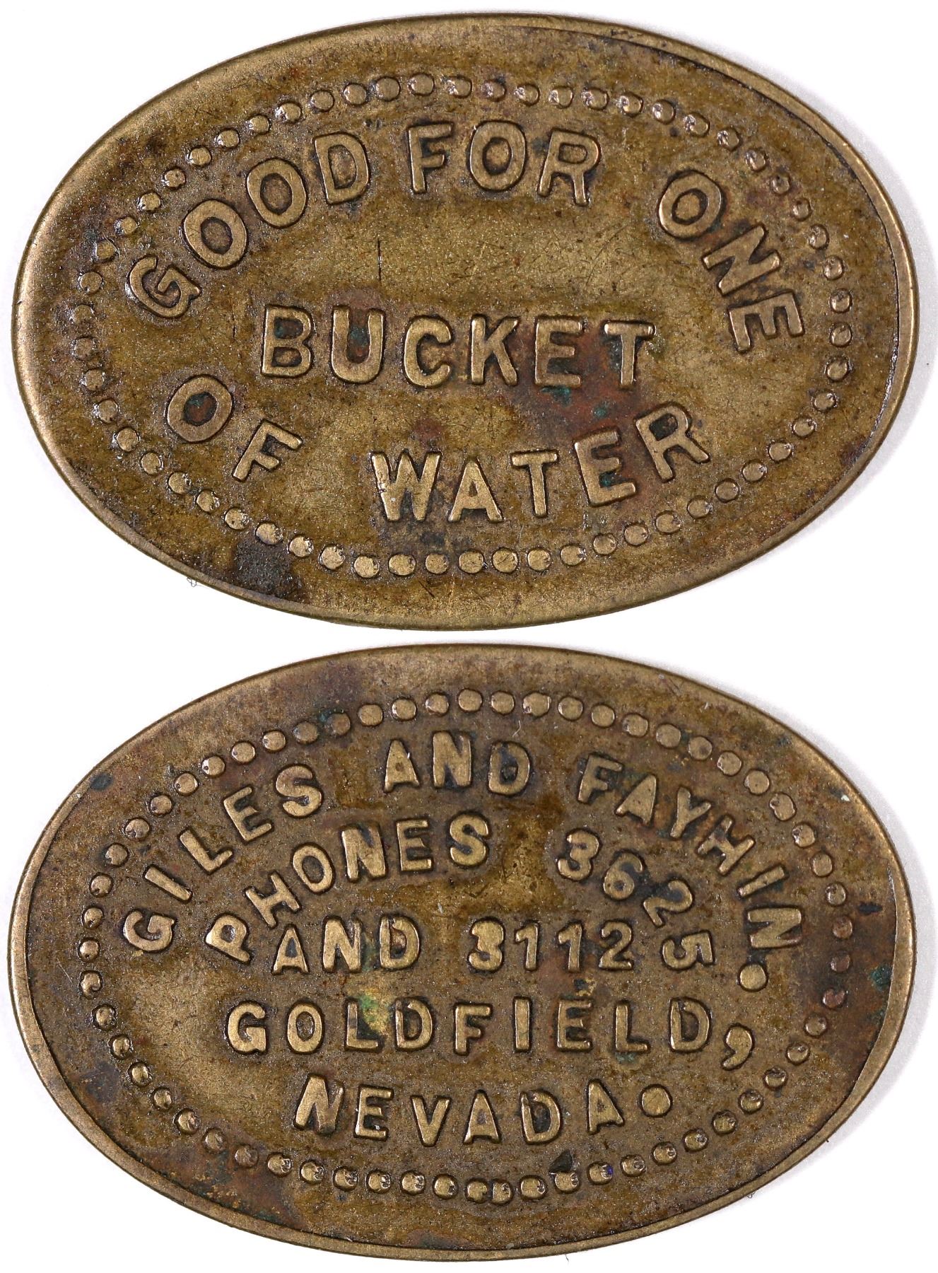 GILES AND FAYHIN, / PHONES 3625 / AND 3112 / GOLDFIELD, / NEVADA.