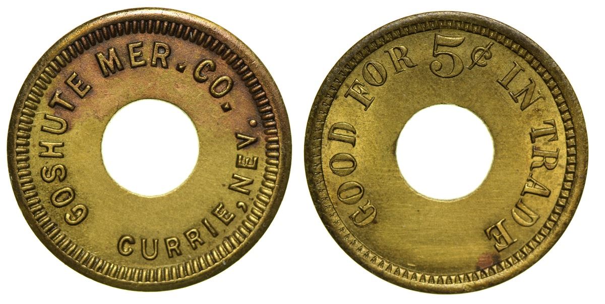 One of finest known. Most are in poor condition. Goshute Mer. Co. / Currie, Nev // GF 5c IT. City: Currie State: Nevada Date: hwac# 32082