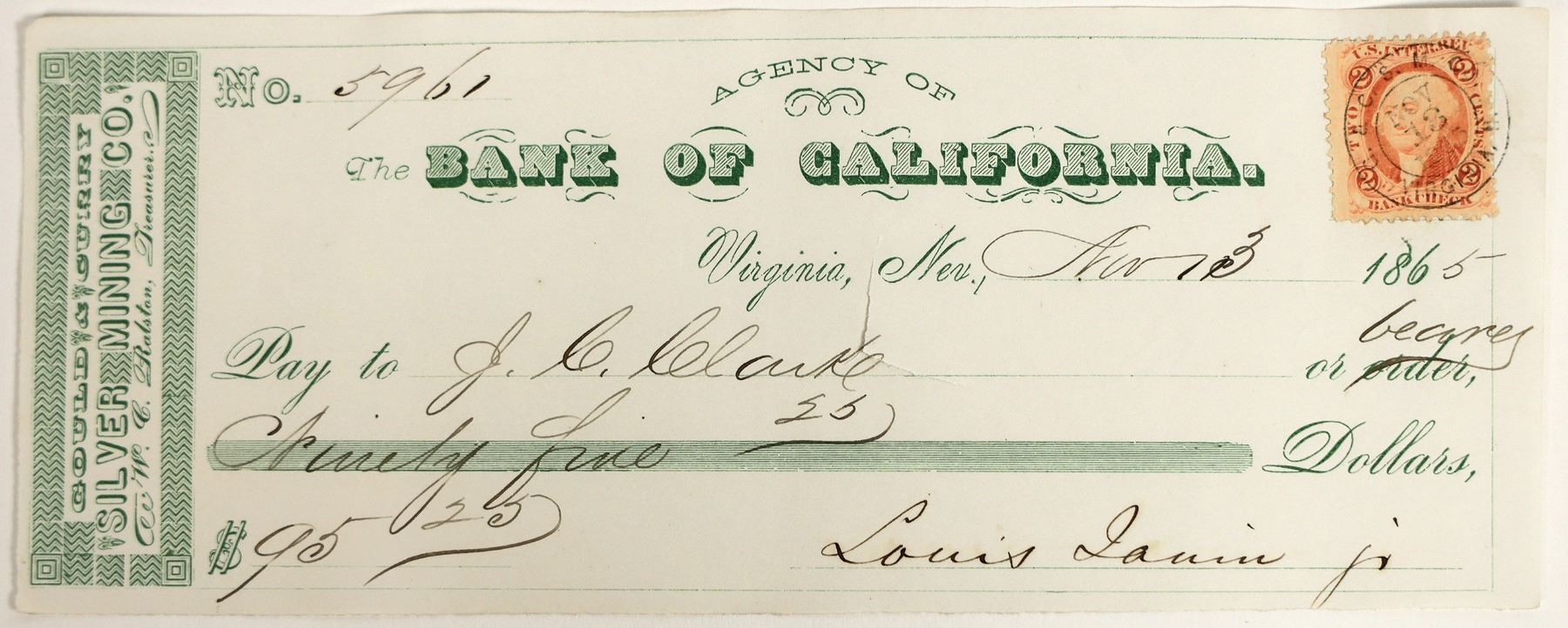 Gould & Curry Mining Check Issued to JC Clark, Sheriff & Mining Partner of George Hearst [198894]