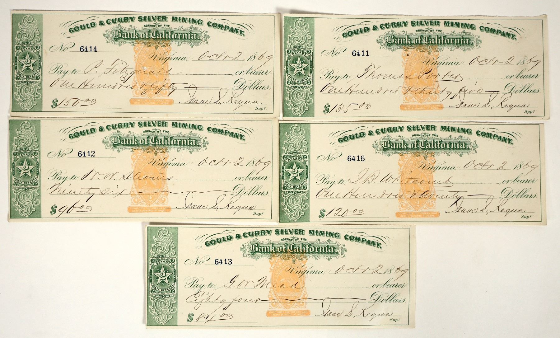 Gould & Curry Silver Mining Co. Revenue Stamp Collector Check Group (5) [199039]