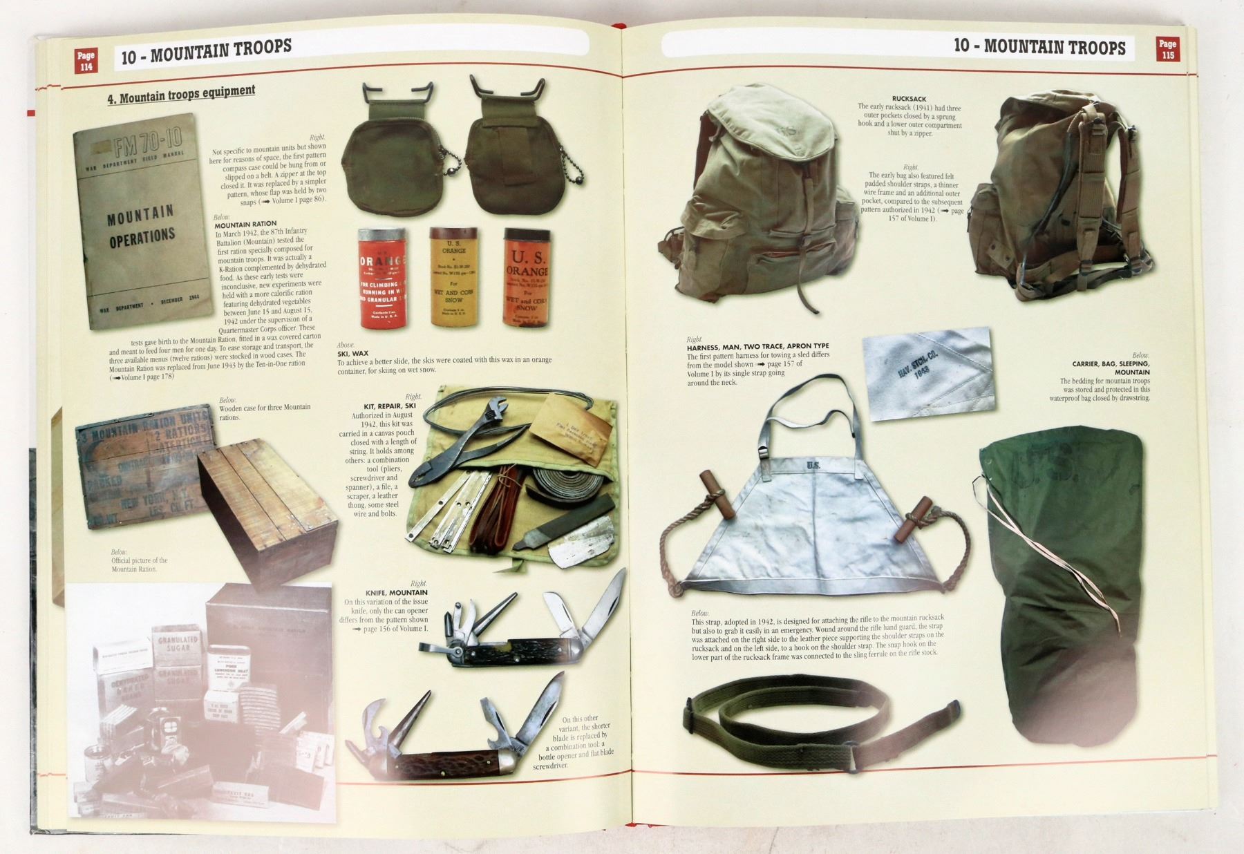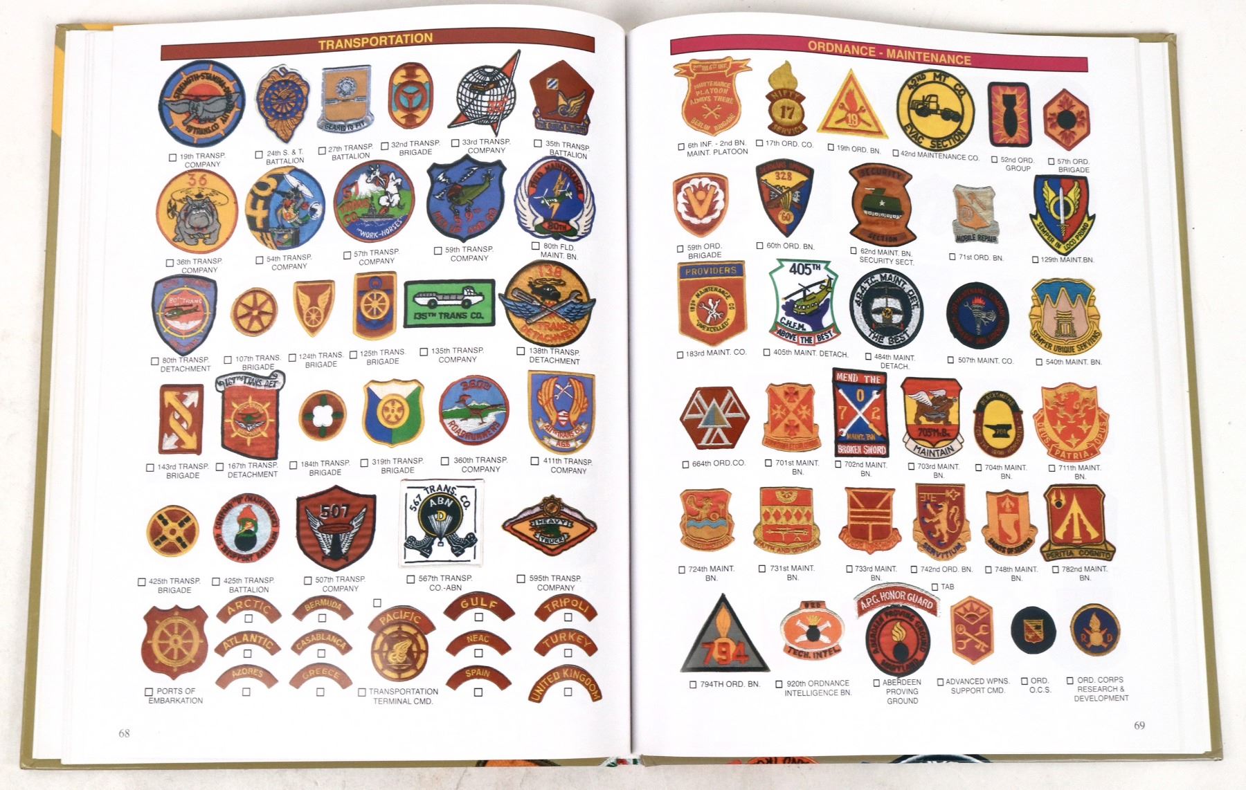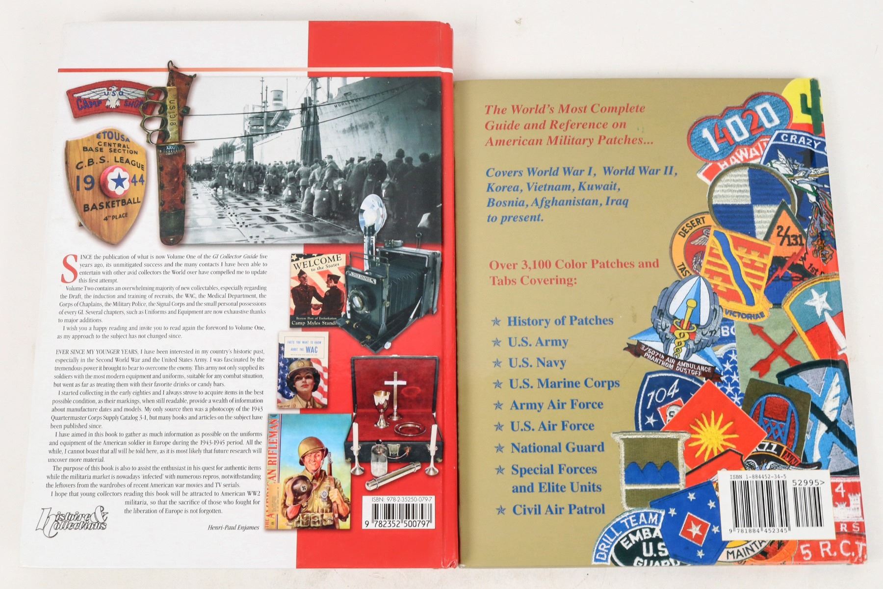 This lot has two books: "Government Issue: U.S. Army European Theater of Operations Collector Guide: by Enjames and "United States Military Patch Guide" by Morgan. Government Issue: U.S. Army is pp.272 well researched and with color photos Volume 2 in excellent condition no DJ. U.S. Military Patch Guide is at pp.115, full color photos and no DJ in very good condition.