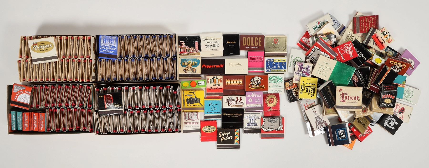Huge lot of mixed Casino and Hotel Match Books from Reno and adjacent areas. (4) boxes of new books, first from the famous Harold's Club (Harold's Club or Bust!), second from Bower's Mansion Carson City Resort, third The Mapes Motel Hotel and Money Tree Casino, fourth Jim Kelly's Nugget in downtown Reno. Finally to round out the group, a bag filled with multiple venues, ranging from the Cal Neva Casino, Harrah's Reno, Caesars Tahoe, the Silver Queen in Virginia City, the Nugget in Sparks, Jessie Becks Riverside, the Commercial in Elko (famous Polar Bear), several Las Vegas notables, and many, many more. A great many of these were Reno fixtures for decades, and are no longer in existence. Too many to count, please review this extensive collection.