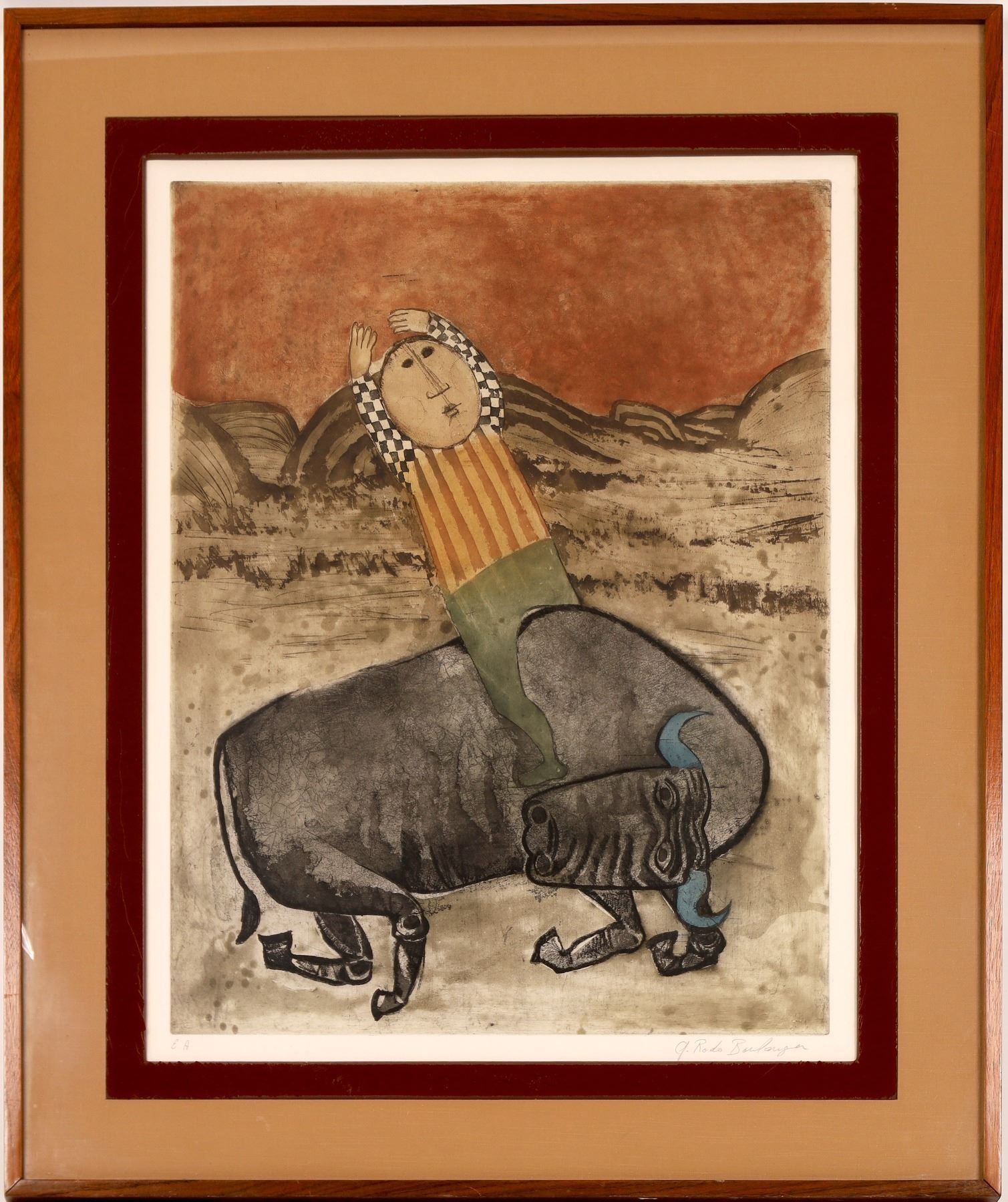 Graciela Rodo Boulanger was born Graciela Rodo Aparicio in 1935 in Las Paz, Bolivia. Her artwork is characterized by round-faced figures engaged in activities and often features stylized renderings of children. She generally employs a muddy background and primary color scheme in her art. Her work has been shown by the Art Gallery of Lincoln Center and featured in the hall of the UN General Assembly. Boulanger designed the International Year of the Child poster for UNICEF in 1979, and her painting was featured on a stamp by the World Federation of the UN Associations in 1993. One of the most sought-after, widely loved, internationally renowned artists of our time, Boulanger's popularity in the art-world cannot be overstated. While her work is very well-known, unmistakable and widely distributed, her lithographs and numbered prints consistently hold their value with 4 figure price tags across the board, while her original pieces are priced in the range of luxury cars and single family homes. It is unlikely you will see another opportunity to own an artist proof from Graciela Rodo Boulanger any time soon.
