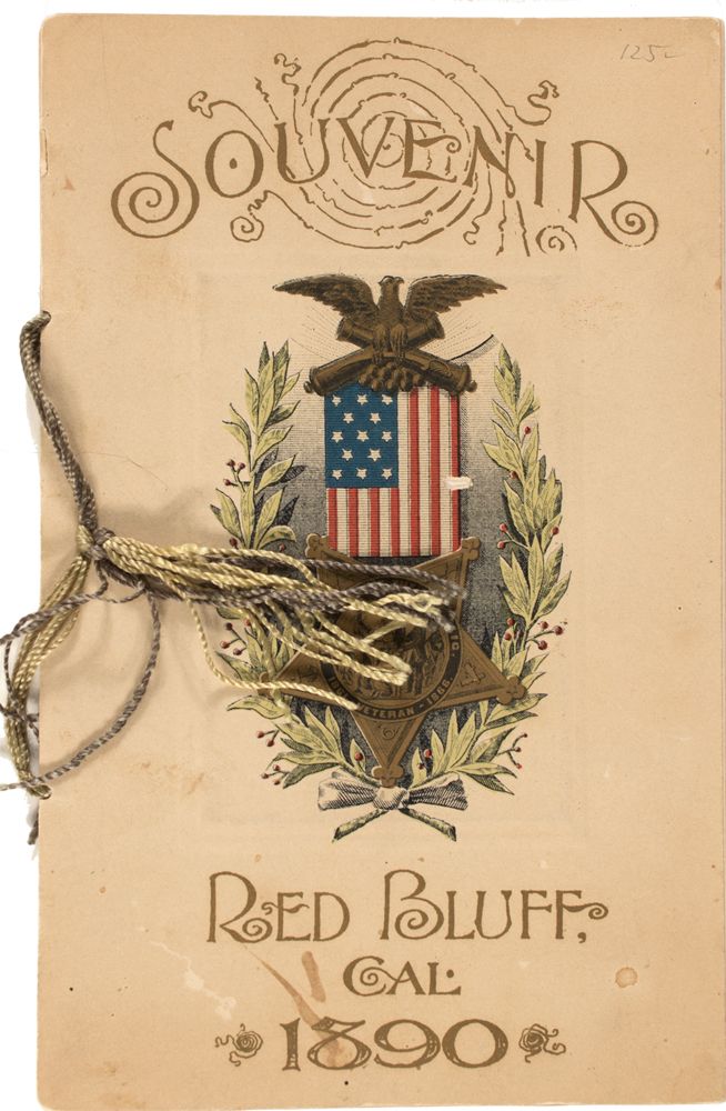 Fourth Annual Reunion. Grand Army Association of Northern California. April 17th-19th, 1890. Patriotic writings by Webster, Lincoln, Holt and Drake. Official program and schedule. Back cover has names of 13 people (at the event?) in pencil. 4.5" x 7.25" Crocker Print. Front and back covers are detached, but present. Prag Collection