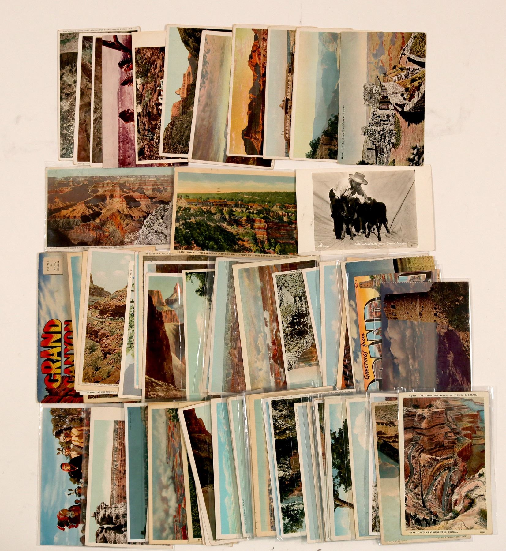73 different colored postcards with scenes from Grand Canyon National Park in Arizona. Grand Canyon was officially designated a National Park on February 26, 1919. It is located in northwestern Arizona and is the 15th site in the United States to have been named a national park. Theodore Roosevelt called it "the one great sight which every American should see." Brian Thaler Collection