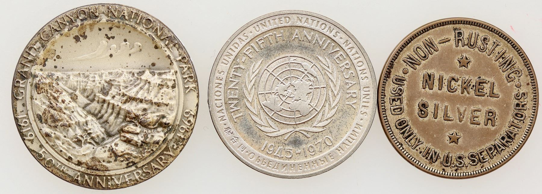 1969 50th Anniversary of the Grand Canyon National Park, one ounce .999 silver medal made by Metallic Art of New York. Also: United States Cream Separator nickel/silver medal; United Nations 25th Anniversary medal 1970.