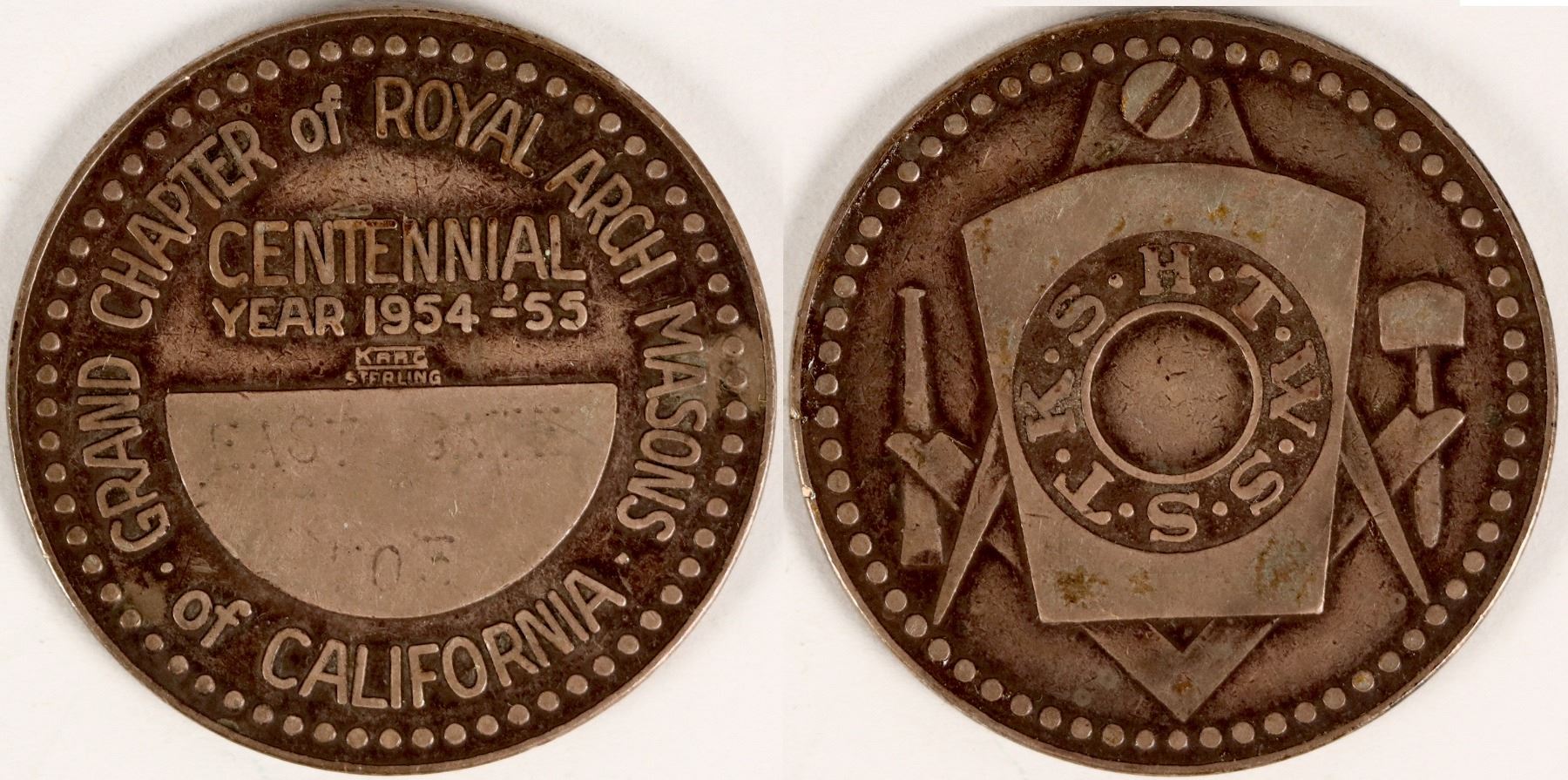 Rare chapter #103 from the year 1954-55 celebrating the hundreth anniversary of this California Masonic organization.