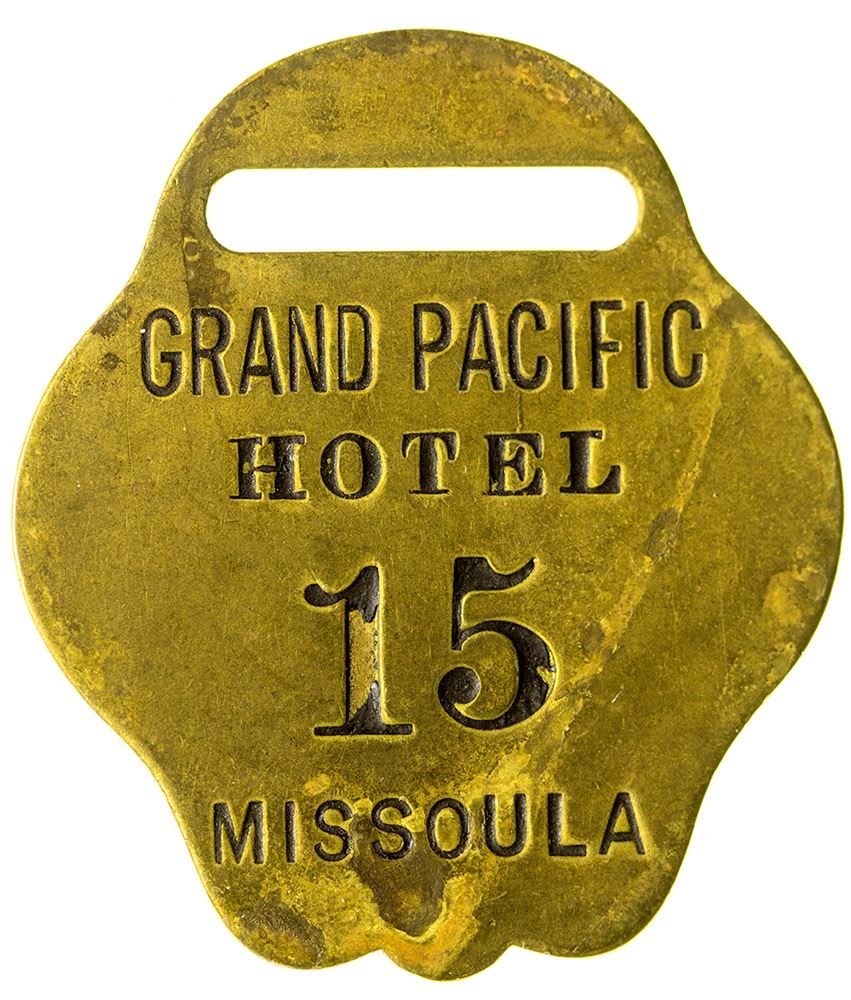 Grand Pacific Hotel key tag. Room 15 brass tag. See photo for details. (Svoboda Collection) City: Missoula State: Montana Date: HWAC# 35931