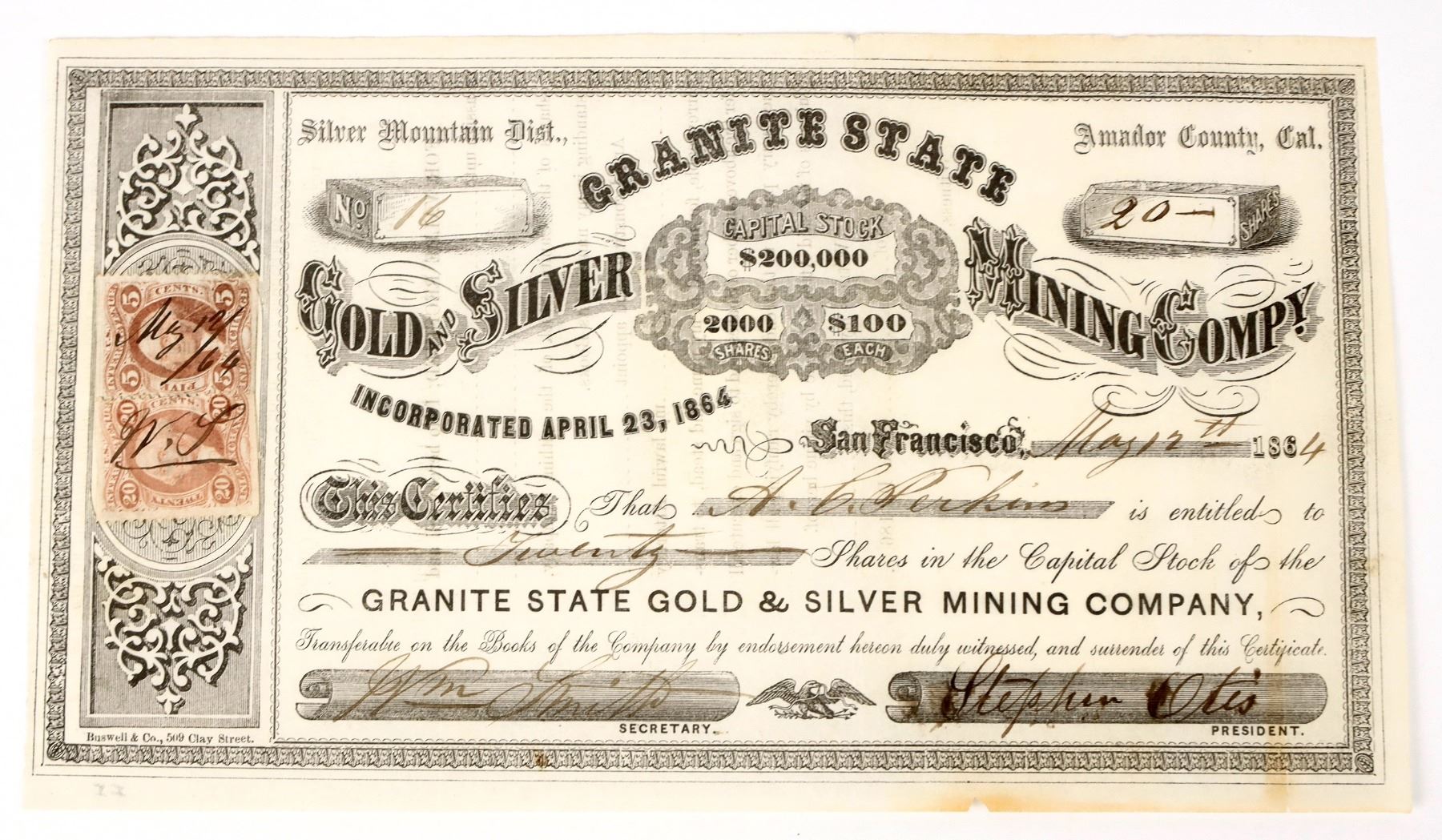 Granite State Gold & Silver Mining Co. Stock Certificate, Silver Mountain, 1864 [198147]