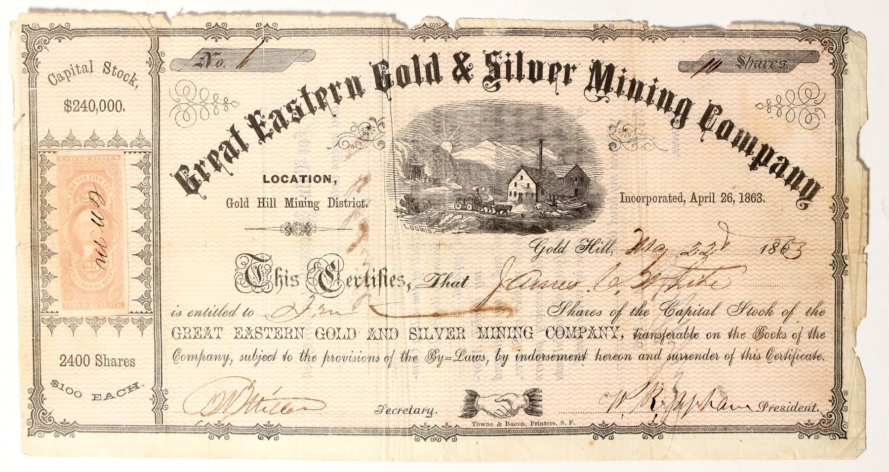 Great Eastern Gold & Silver Mining Co. Stock Certificate, Gold Hill, Nevada Territory, #1 [195359]