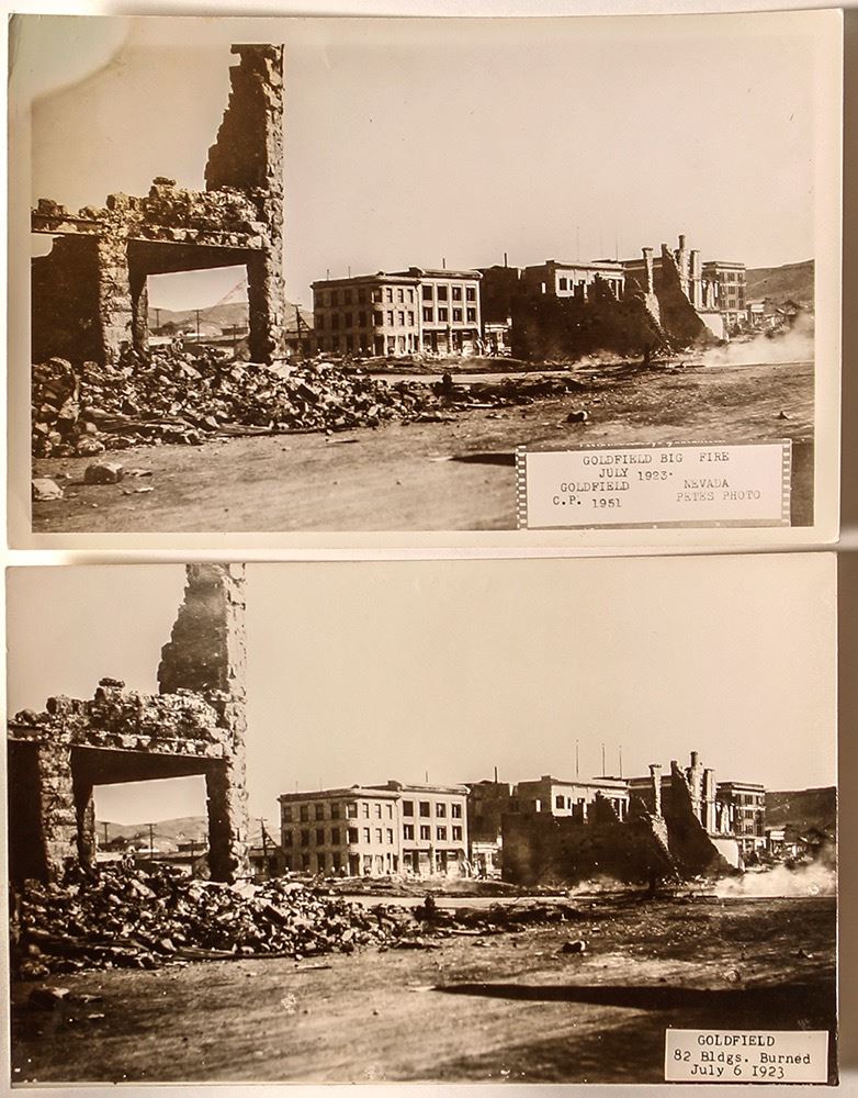 Two views of the devastation from the July 6, 1923 fire that destroyed 92 buildings. City: Goldfield State: Nevada Date: ID# 44753