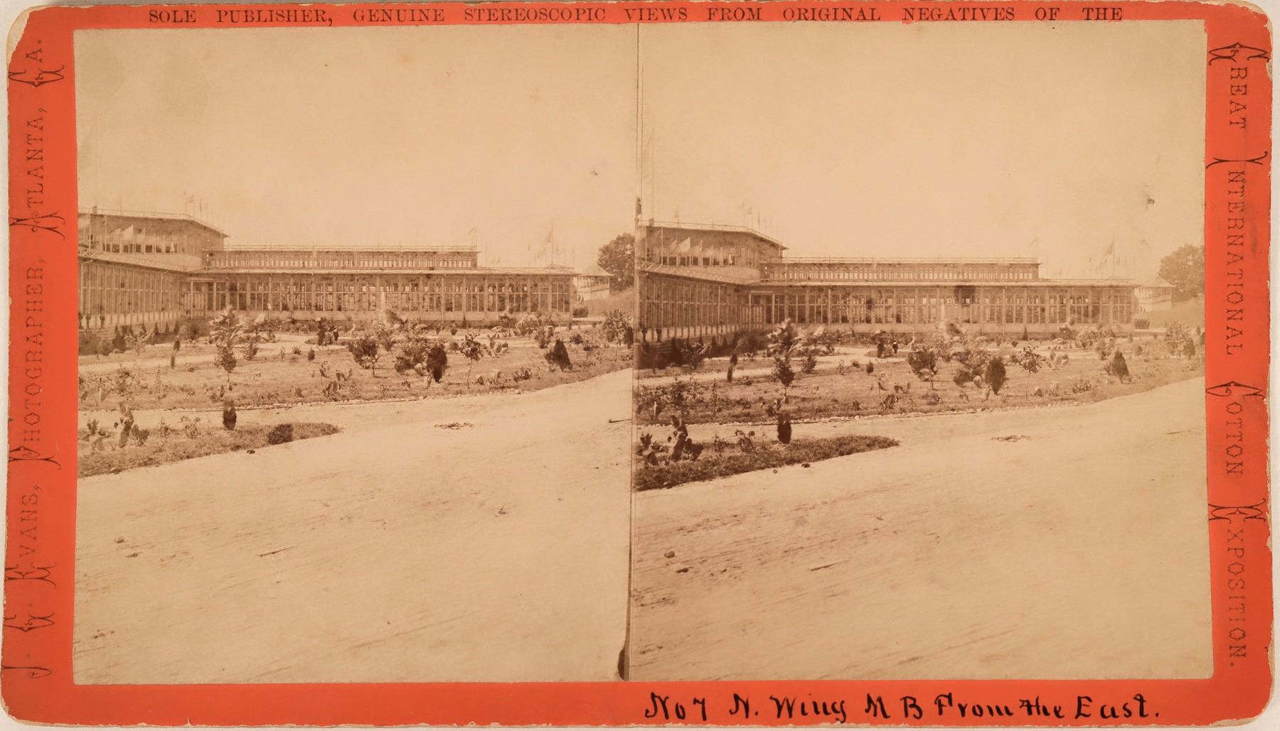 Published by JG Evans of Atlanta. Hand written "No. 7 N. Wing M. B. From the East." This exposition and World's Fair became known as the Code of 1882. Significant of Georgia s rehabilitation from the ravages of Civil war was an event which occurred during Governor Colquitt s administration the great International Cotton Exposition of 1881. For a city of only 50,000 inhabitants to inaugurate the first world's fair ever held in the South and to carry forward such an enterprise to a most successful climax is an achievement little short of miraculous especially when remember that only sixteen short years before this time Atlanta was a mass of smoldering ruins in the wake of Sherman s destructive march to the sea. One of the most interested of all the visitors to this exposition was the grim despoiler himself Gen William Tecumseh Sherman But he was most warmly and graciously received. Georgia Atlanta 1881 Ken Prag Collection