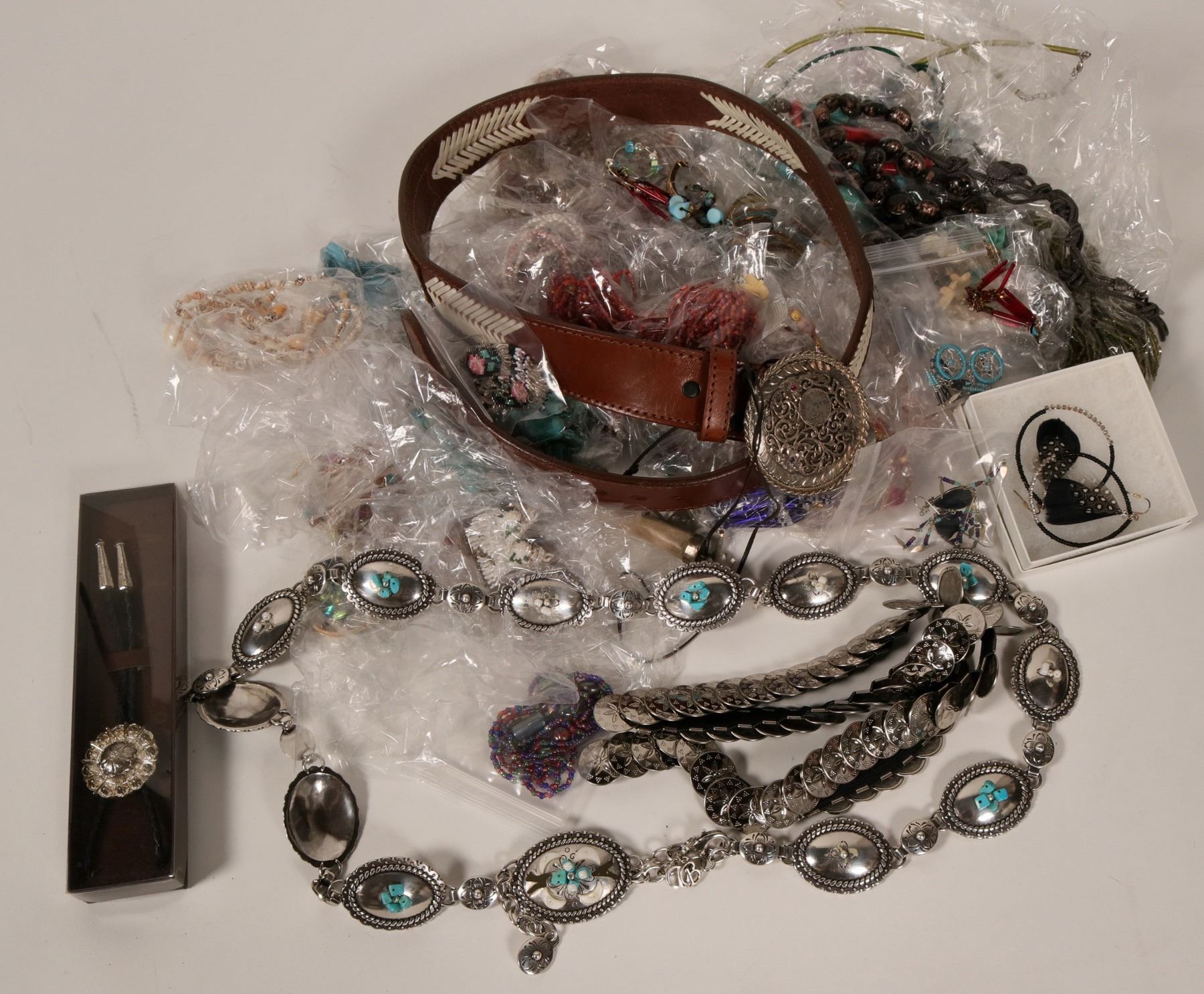 Over 50 pieces in this fun lot of ethnic jewelry. Beautiful beaded earrings and necklaces in the group. Some real values and one of a kind pieces. Please inspect.