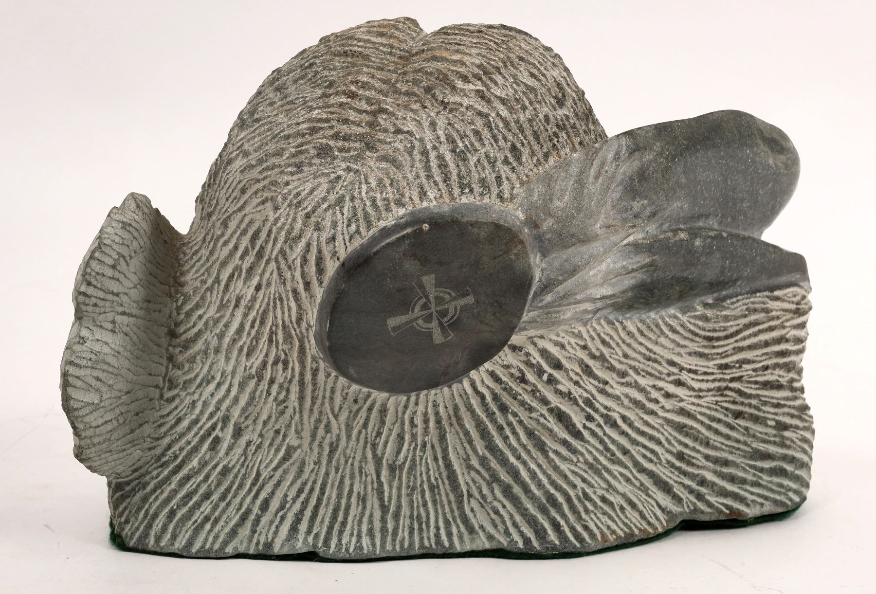 Hand carved greenstone sculpture of a Native American warrior. Unsigned, originally purchased from the now closed Out West Gallery in Coleville, CA. 8x11.5x9".