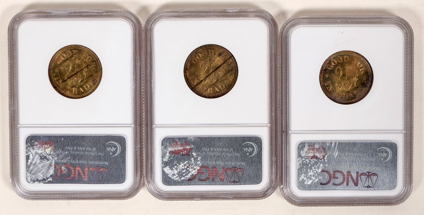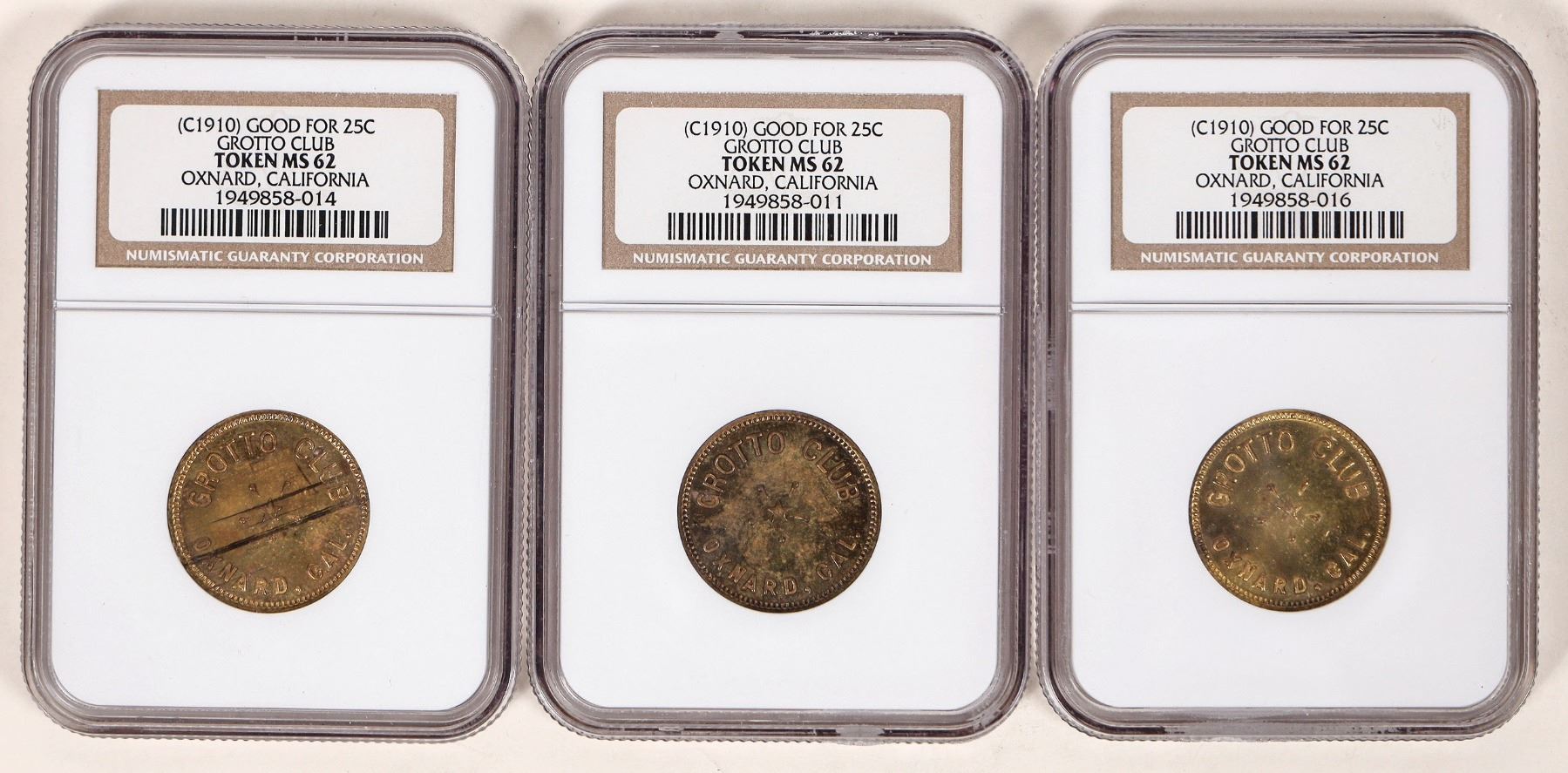 Are they different? Grading seminar material: NGC says these three tokens are all MS 62.