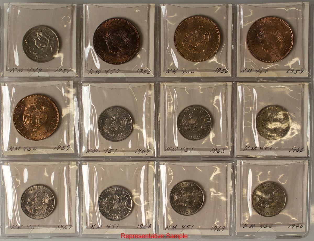 Lot of 19 cincuenta centavo coins, KM #449, #450, #451 and #452. 1950-1981. State: Mexico City: Date: FHWAC#: 42211