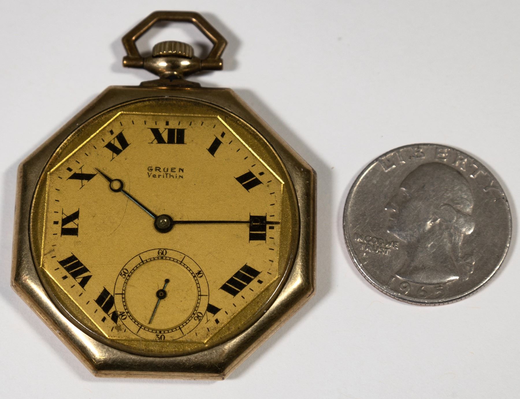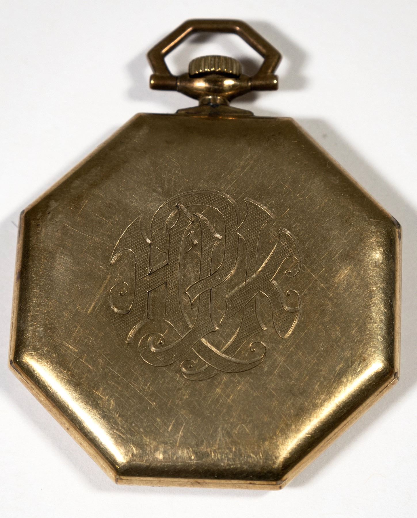 Gruen 14k yellow gold Verithin open face pocket watch. Engraved on back "HPK". Though non-working, this watch is in very good condition. Gruen was an American company in Ohio that had its patented movements made in Switzerland. State: City:Biel Date:cearly 1900's Provenance: