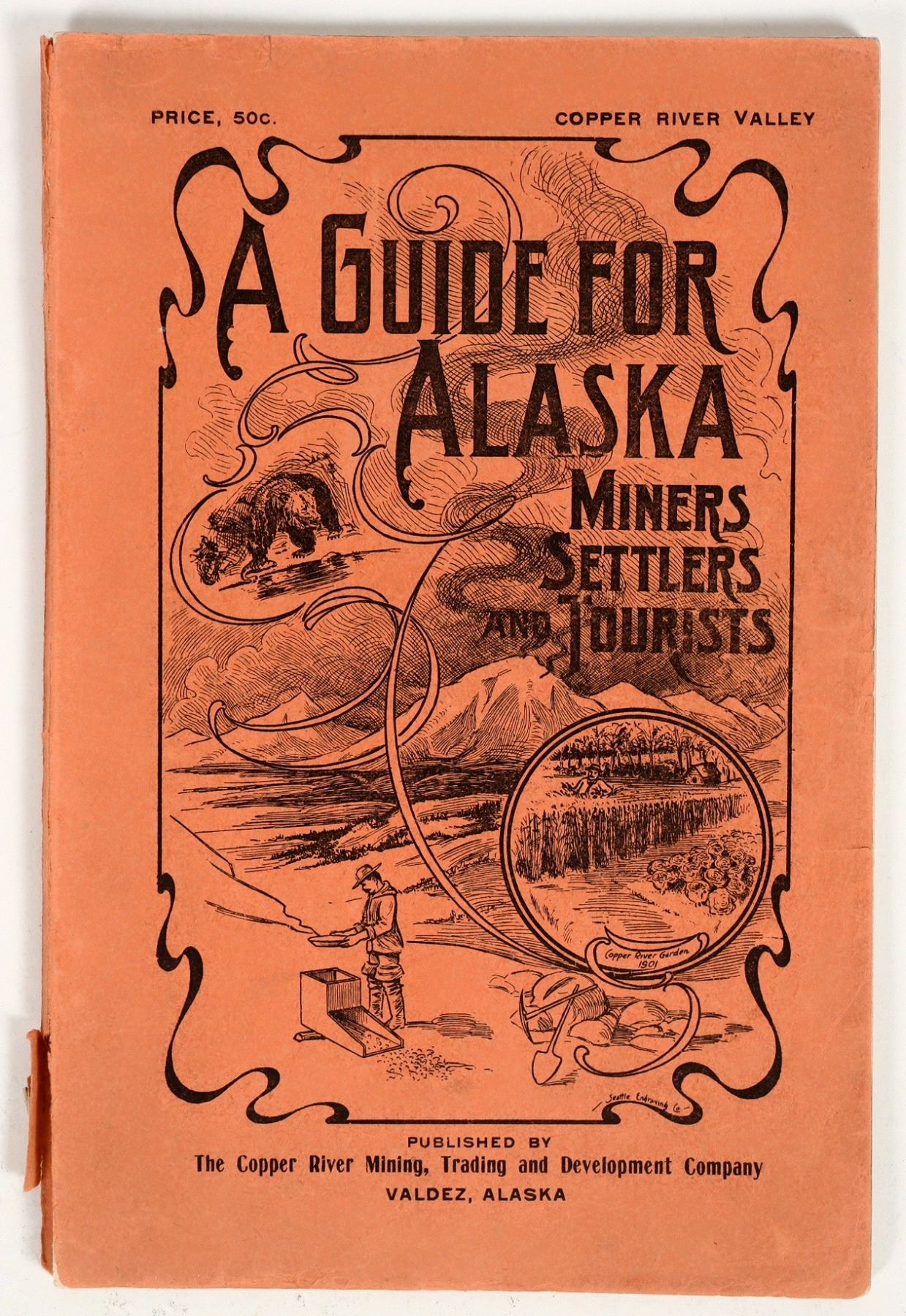 Extremely rare miner's guide to Alaska published by the Copper River Mining, Trading and Development co. at Valdez, Alaska, 1902, printed by Seattle Register Print. Softbound, 6 x 9 1/4", 93pp, last 3pp blank, as intended Excellent condition for a 93pp booklet, only defect is bottom of spine binding cover slightly torn (easy fix). A portion of the book is written by Major. W.R. Abercrombie, who boldly and blatantly states that Valdez has a better copper deposit than Butte. The book is profusely illustrated.