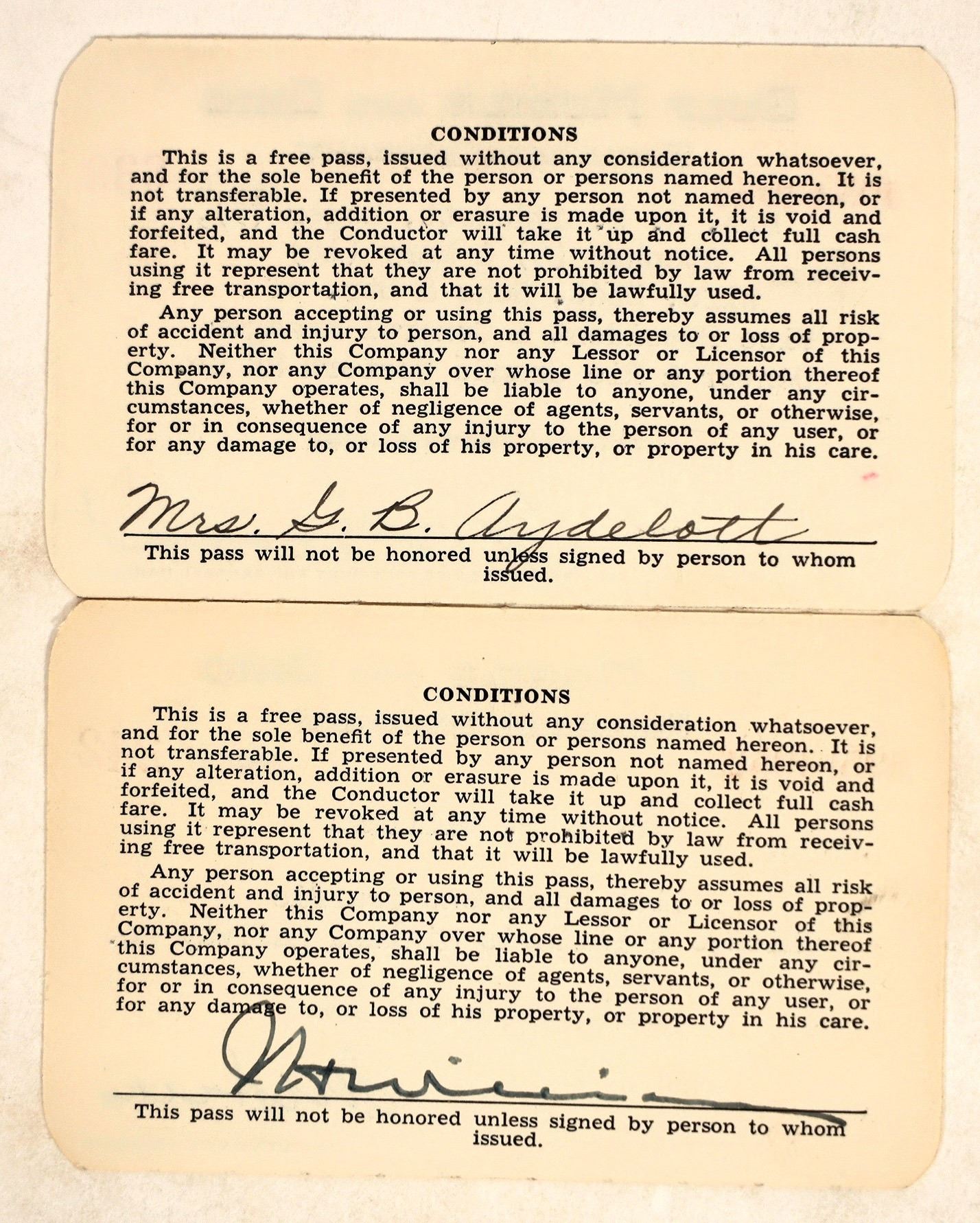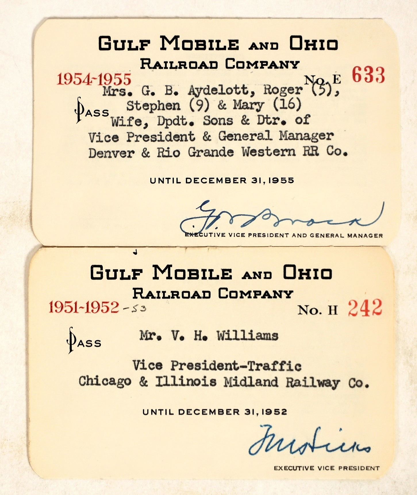 Group of 2 railroad passes from the Gulf Mobile & Ohio Railroad Company. Passes date from the early 1900s; see photos for specific years and additional detail.