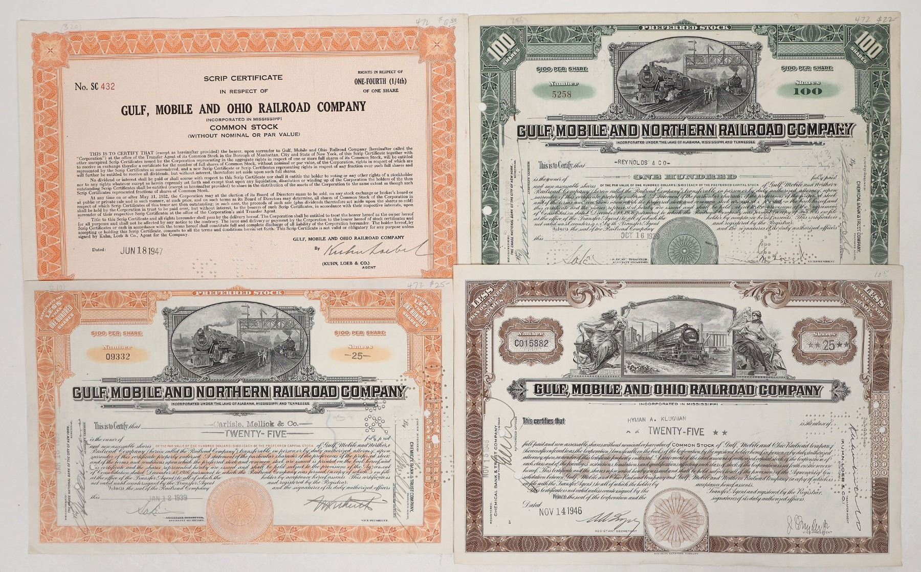Gulf, Mobile and Northern RR Stocks, 4 Different [192341]