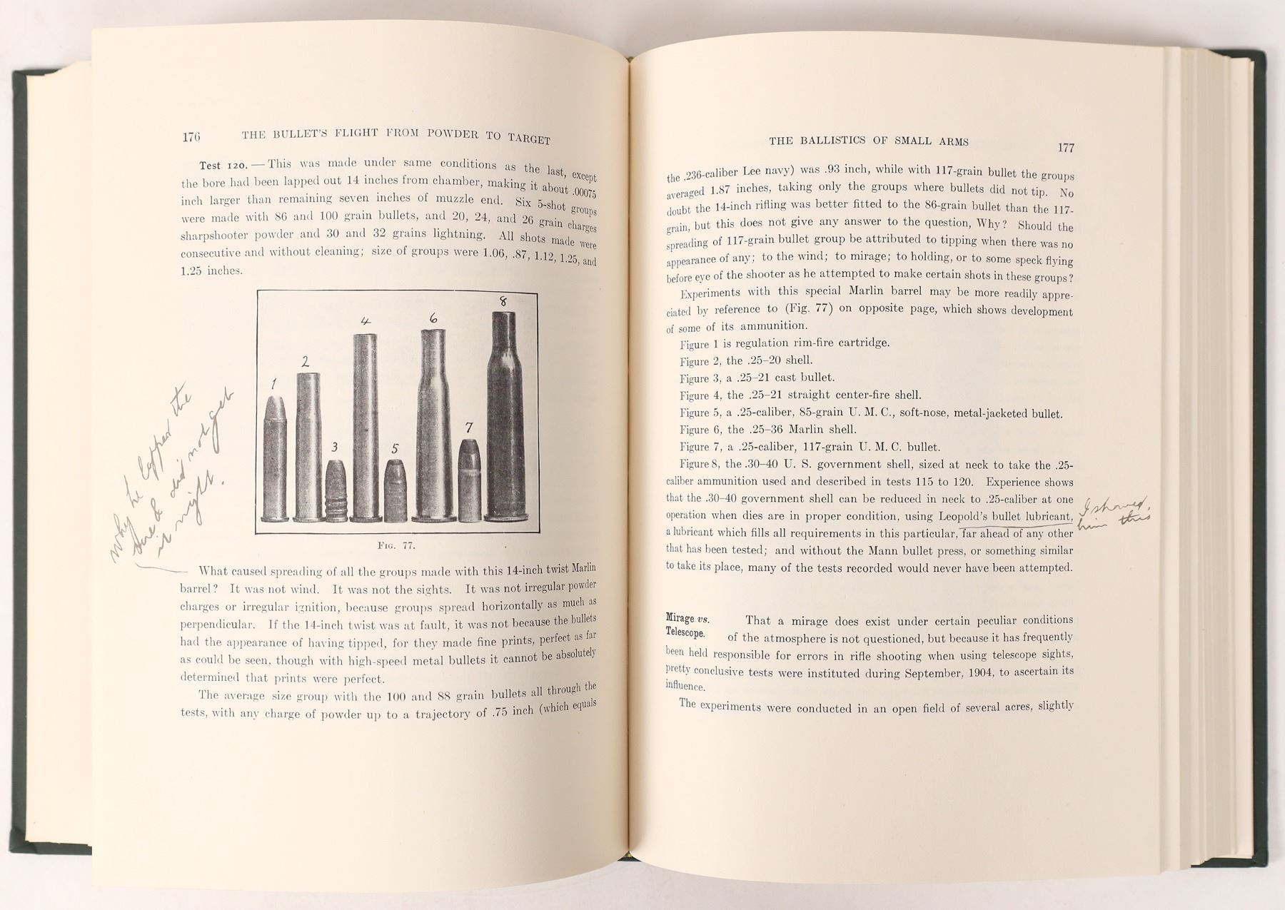 This library of gun books is the reference material for both shooters and reloaders alike. Most books are long out of print. Handloading Ammunition by Mattern, Wolfe Publishing Hardcover 1926 like new owner signed; The Winchester Book by Madis hardcover like new author autographed; United States Military Muskets Rifles-Carbines by Martin Rywell soft cover VG; The Bullets Flight by Mann 1980 hardcover very good cond. owner signed; 71st Annual Encampment of the Dept. of Penn. Grand Army of the Republic 1937 hardcover good cond.; Jane's Fighting Ships 1960-1961 hardcover loose binding good cond.; Famous Guns from the Smithsonian Collection by Bowman 1966 with DJ owner signed very good cond.; Beretta Automatic Pistol by Wood 1985 hardcover with DJ excellent cond.; Artists and Illustrations of the Old West y Taft hardcover with DJ 1953 very good cond.; World War 11 Remembered by Schwan and Boling 1995 hardcover excellent cond. This lot has several more related softcover edition for machine guns, tanks, armored vehicles, the Snider Rifles in PB. Please see photos for complete lot.
