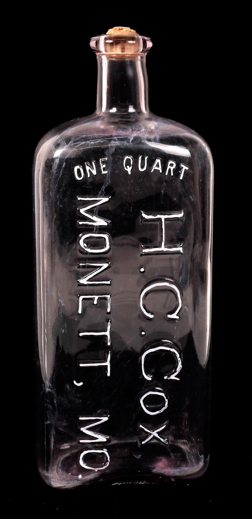 Embossed one quart H. C Cox/Monett, MO. 9.5". No apparent chips or cracks.