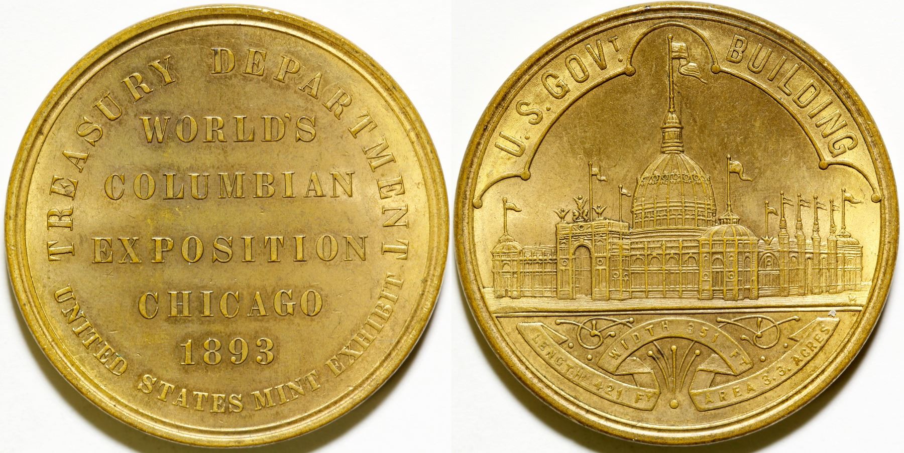 World's Columbian Exposition So Call Dollar. Brass, 37 mm, R-2. EF-AU condition. Salvatore Falcone Collection.