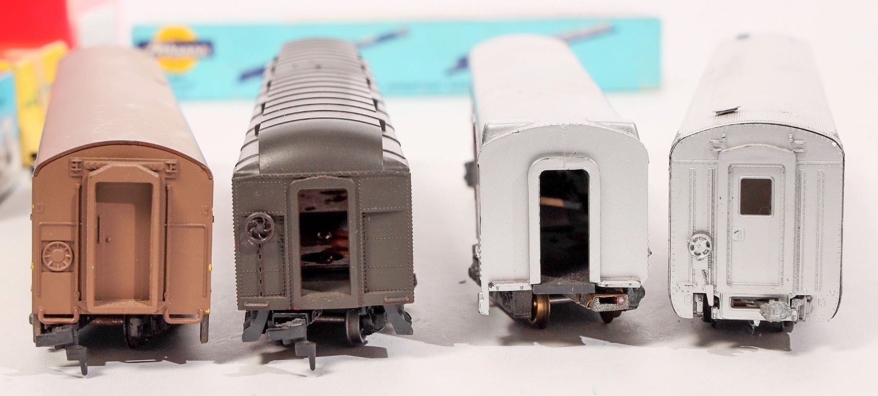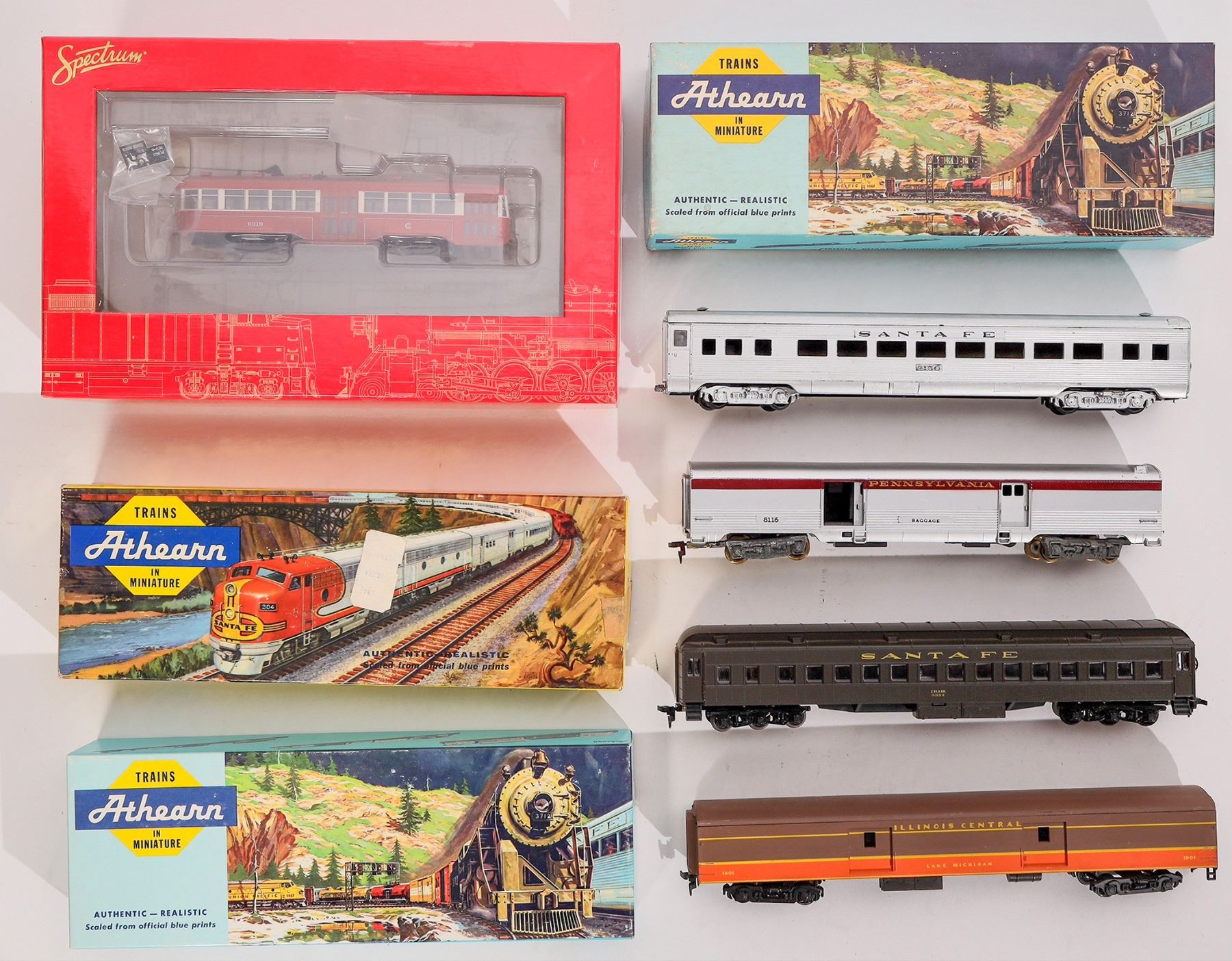 Lot of 1. Athearn RTR powered, SP Daylight 'B'unit, baggage car. Rivarossi Ill. Central baggage car, two coach ,two baggage cars. 2. Key Imports (Korea) NIB, Colorado Southern 2-6-0 Mogul, C8. 3. Spectrum PeterWitt NIB, Street Car (DCC).