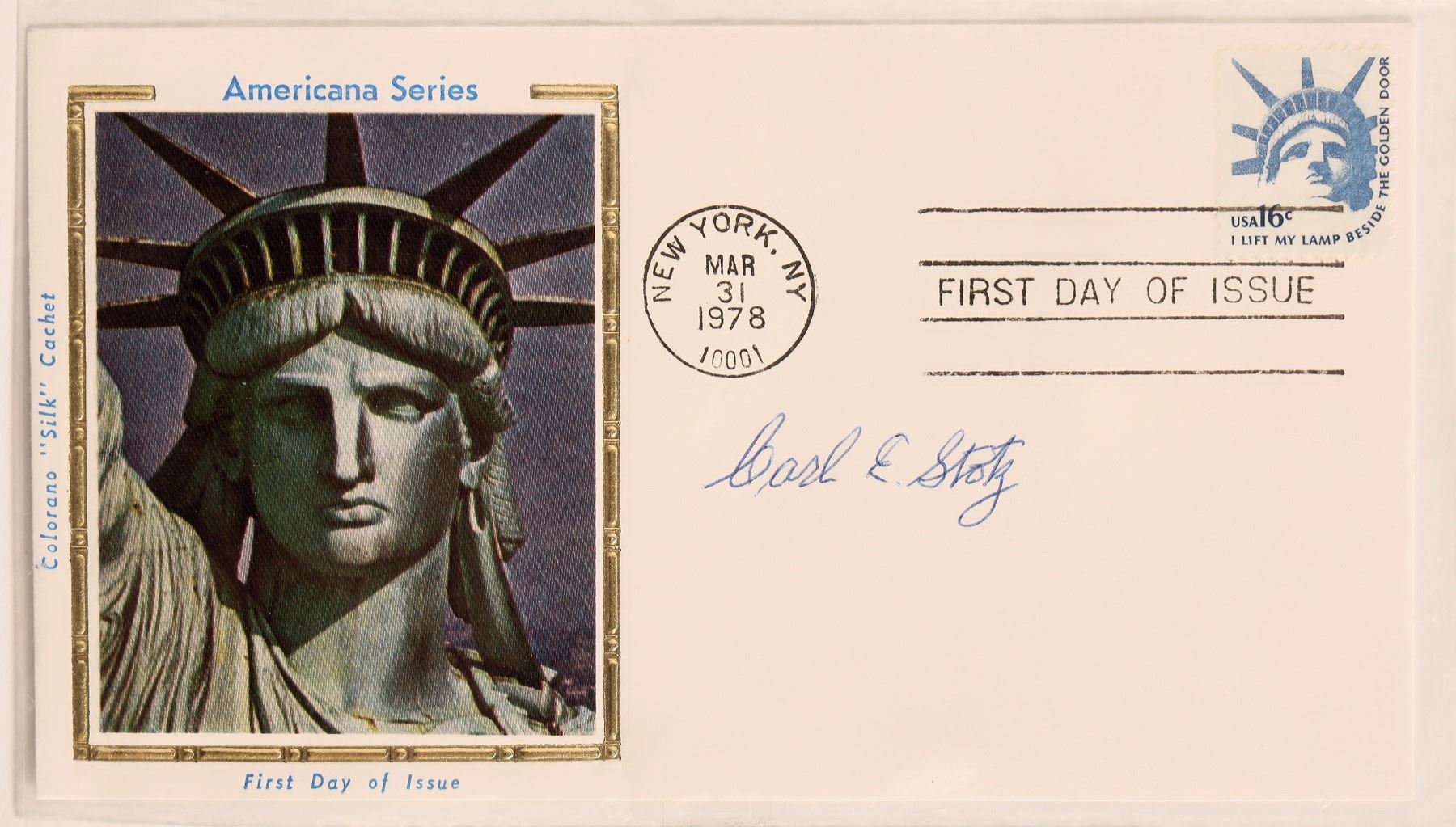 Autograph of Carl E. Stotz, the founding father of Little League Baseball. It's on a first day cover dated March 31, 1978._x000D_