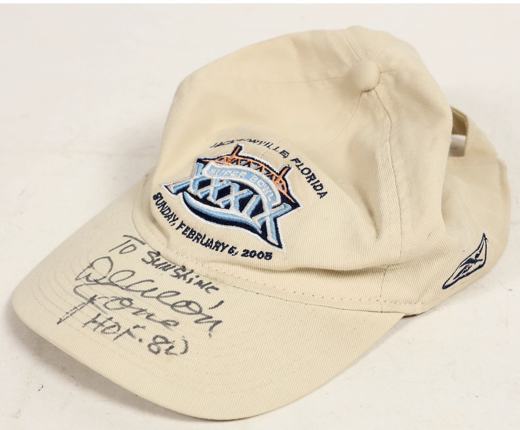 Super Bowl XXXIX hat signed by Jones in black marker to Sunshine. Deacon Jones was a legendary American football defensive end who played primarily for the Los Angeles Rams from 1961 to 1971 and is credited with coining the term "sack" for tackling the quarterback. Renowned for his speed, strength, and relentless pursuit, Jones was an eight-time Pro Bowler and was inducted into the Pro Football Hall of Fame in 1980. His dominance on the field helped redefine defensive play in the NFL and left a lasting legacy as one of the game's greatest pass rushers.