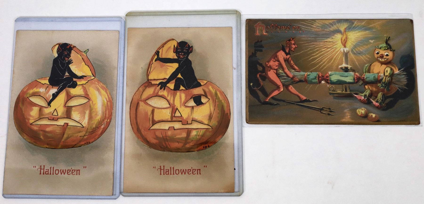 Three Halloween postcards from the Ken Prag Collection with a devil in the details. See photo for those devilish details.