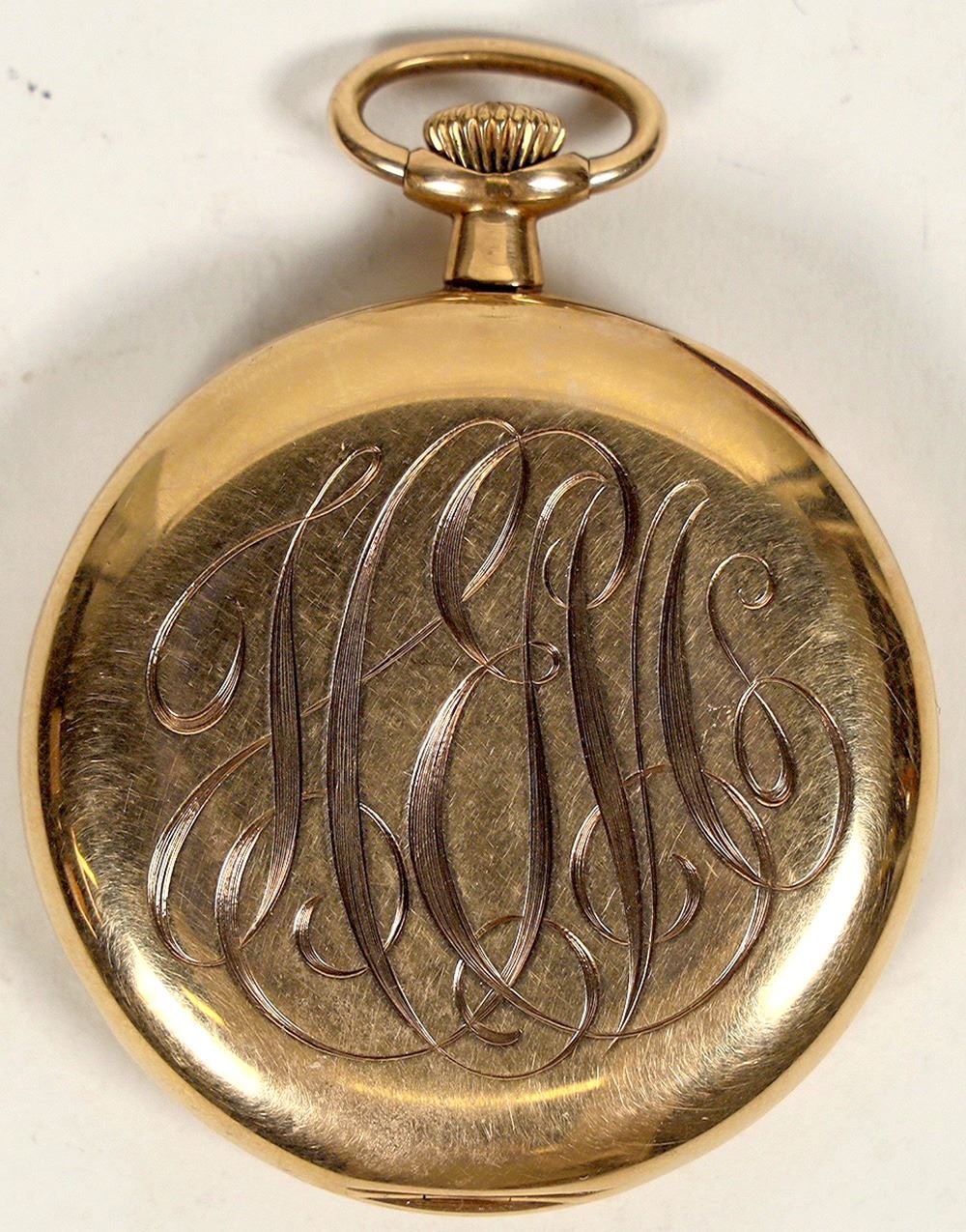 Hamilton 23 jewel, 14 carat pocket watch. #6617137; engraved back "HEM"? Appears to work. 66.0 grams.