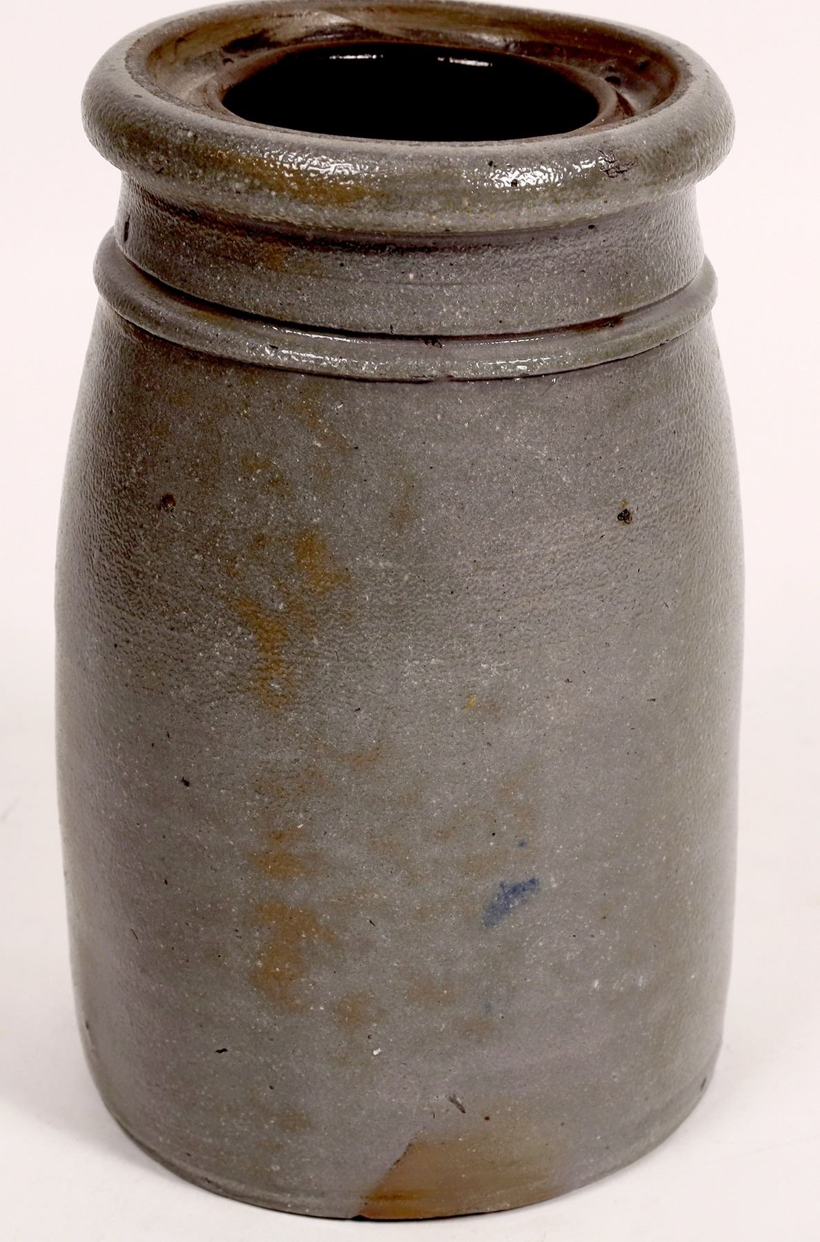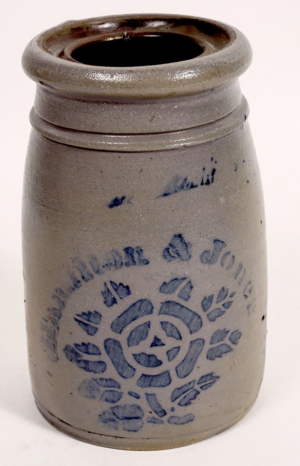 Brown/gray canning jar stoneware. Hamilton & Jones. 8x5". No apparent chips or cracks.
