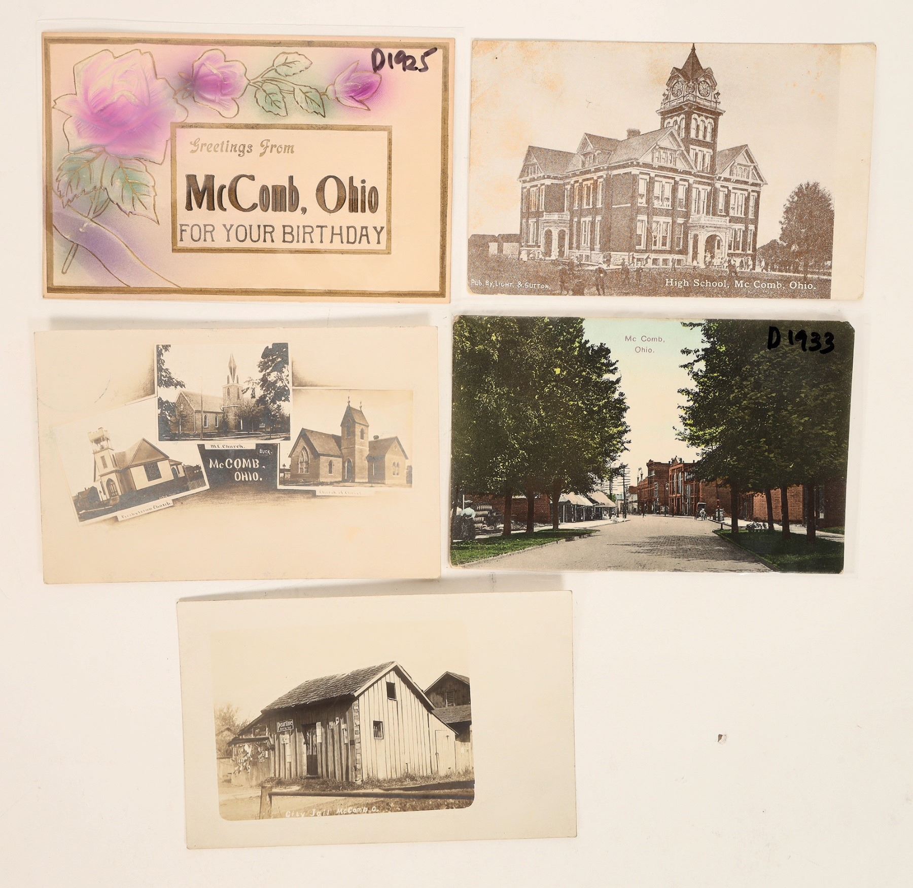 5 Mccomb. RPC's-city jail, 3 churches. Also, street scene, high school, birthday greetings.[ Hancock County Ohio