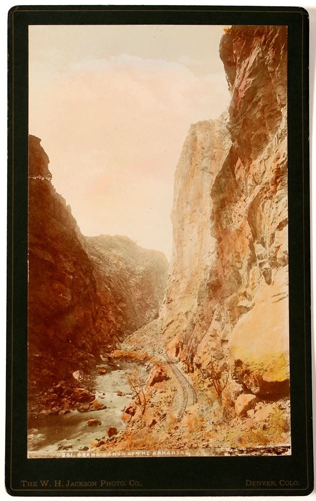The W.H. Jackson Photo Company of Denver created this beautiful 4 1/4 x 7 inch photograph of the "Grand Canon of the Arkansas," Sold by the Chain & Hardy Co. Art Dealers, Denver, Colorado. City: Royal Gorge State: Colorado Date: ID# 44704