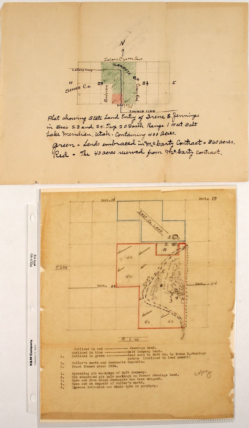 8.5" x 11" hand drawn and colored map of a Utah land patent showing Sanpete Co. and Salt Co. land. Utah Salt Lake City c1918