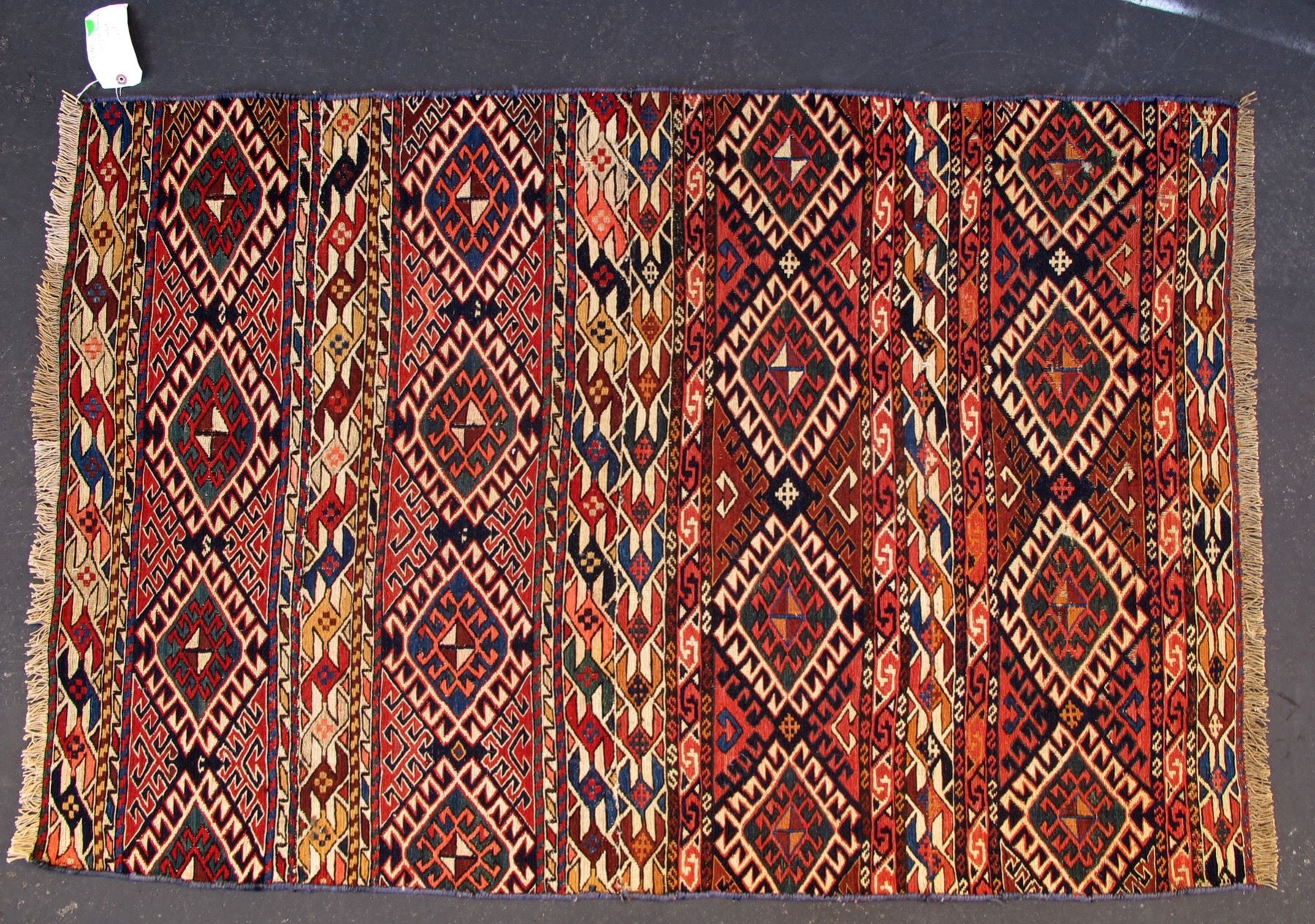 Hand made wool rug. 65" x 31", beautiful colors. Has been hung on wall. Good condition.