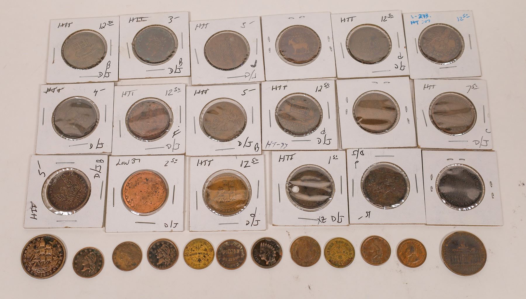 Lot of 20 hard time tokens: Low numbers 37,58, 97, 300, 273 and fifteen others. Ten Civil War tokens (cents).