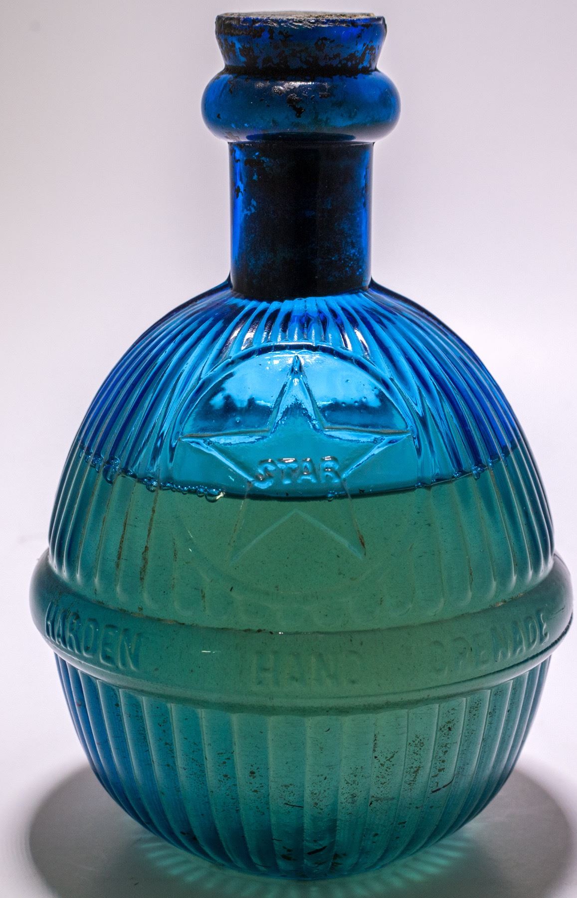 Harden Aqua Fire Grenade with liquid inside. Approx 6.5 x 4 inches. No apparent chips or cracks. State: City: HWAC#: 48500 Date: