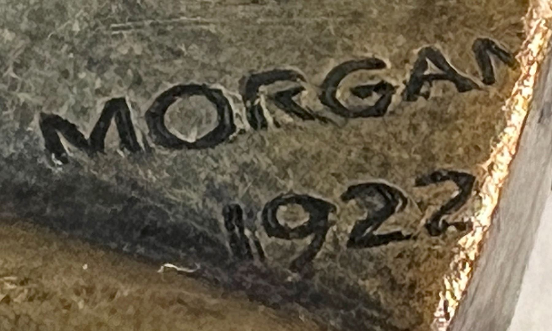 This 1923 Warren Harding Commemorative medallion was struck by the United States Mint in Philadelphia not long after the assassination of the 29th president that year. It came to us in the included buckskin pouch with a consignment of Native American beaded buckskin items, though we do not know the significance or relationship between the pouch and the medallion. The pouch appears to have been sized specifically to fit the Harding medallion, and it is ornamented with a pierced 1905 Indian Head penny. Dr. Jesse Kraft at the American Numismatic Society tells us that the Harding medallion dies were engraved by George T. Morgan (of Morgan dollar fame) while he was the Chief Engraver. The three-inch (77mm) Harding medallion was produced in bronze and silver by the US Mint beginning in October of 1923. 55 pieces were struck before the reverse die broke, requiring a new die to be engraved, but this time the reverse design included MORGAN at the bottom, whereas it did not appear on either side of the first 55 strikes. Then, 508 medallions were struck until the obverse die wore out and was replaced with a new die that had Morgan's name and 1922 added to the right of Harding's shoulder. With Morgan's name on both sides (see photos), this piece is one of the third and least rare strike sets of the Harding medallion. Of minor note is the appearance of a row of swastikas above Morgan's name on the reverse. This was not uncommon at the time and predates the appropriation of this ancient "good luck" symbol by the German Nazi party prior to WWII.